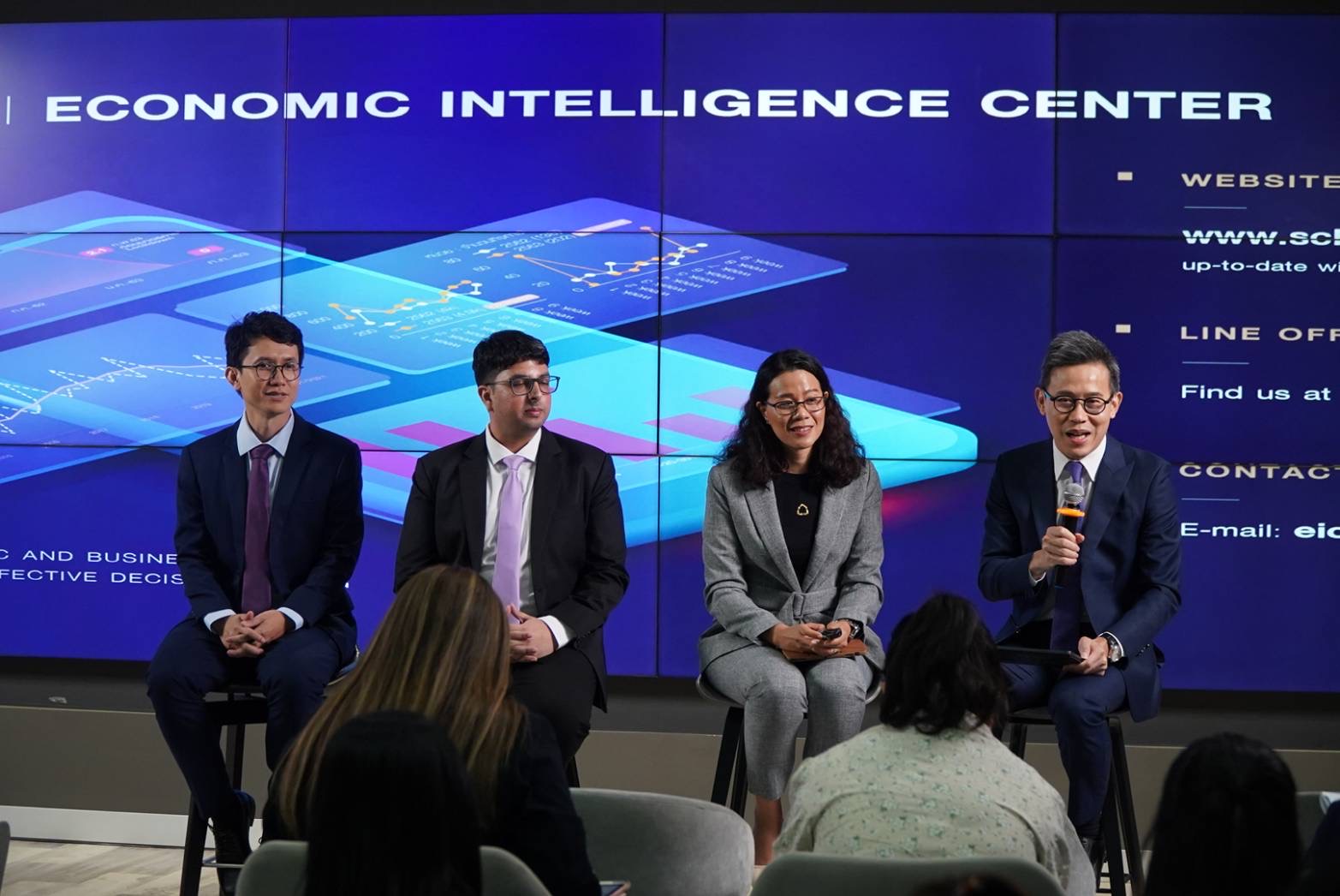 ดร.สมประวิณ มันประเสริฐ รองผู้จัดการใหญ่ ประธานเจ้าหน้าที่บริหาร กลุ่มงาน Economic Intelligence Center (EIC) และรองผู้จัดการใหญ่ ประธานเจ้าหน้าที่บริหาร กลุ่มงานกลยุทธ์องค์กร ธนาคารไทยพาณิชย์ เปิดเผยว่า SCB EIC ปรับลดประมาณการเศรษฐกิจปี 2566 เหลือ 3.1% จากเดิม 3.9% จากข้อมูลจริงไตรมาส 2 ที่ต่ำกว่าคาดมากและการส่งออกสินค้าที่หดตัวแรงต่อเนื่อง แต่ยังมีแรงหนุนหลักจากการบริโภคภาคเอกชนและภาคการท่องเที่ยว นักท่องเที่ยวต่างชาติเดินทางเข้าไทยฟื้นตัวดีตามประมาณการ 30 ล้านคน โดยเฉพาะนักท่องเที่ยวตะวันออกกลางที่เร่งตัวและเป็นนักท่องเที่ยวกลุ่มเป้าหมายใหม่ ส่งผลให้ภาคบริการฟื้นตัวต่อเนื่องช่วยลดความเปราะบางในตลาดแรงงาน