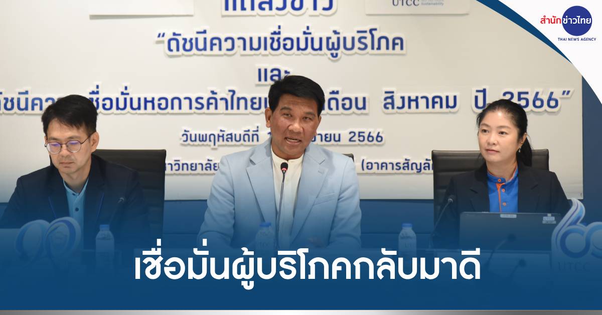 รศ.ดร.ธนวรรธน์ พลวิชัย อธิการบดีมหาวิทยาลัยหอการค้าไทยและประธานที่ปรึกษาศูนย์พยากรณ์เศรษฐกิจและธุรกิจกล่าวถึงผลการสำรวจดัชนีความเชื่อมั่นของผู้บริโภคประจำเดือนสิงหาคม 2566 โดยดัชนีความเชื่อมั่นของผู้บริโภคปรับตัวดีขึ้นอีกครั้งหลังจากเดือนที่แล้วที่ปรับตัวลดลงเป็นครั้งแรกในรอบ 14 เดือน เนื่องจาก ผู้บริโภคเริ่มกลับมามีความเชื่อมั่นในการจัดตั้งรัฐบาลใหม่ว่าจะจัดตั้งได้เร็วเพื่อขับเคลื่อนเศรษฐกิจให้ฟื้นตัวขึ้นหลังจากที่มีการแต่งตั้งนายเศรษฐา ทวีสิน เป็นนายกรัฐมนตรีคนที่ 30 ของประเทศไทย และเห็นว่าการเมืองไทยจะมีเสถียรภาพมากขึ้นในอนาคตหลังจากที่มีการจัดตั้งรัฐบาลสลายขั้วการเมืองต่างๆ ที่มีความเห็นแตกต่างกันโดยที่ความขัดแย้งทางการเมืองน่าจะคลี่คลายลง ส่งผลให้ความเชื่อมั่นของผู้บริโภคทุกรายการปรับตัวดีขึ้นทุกรายการ