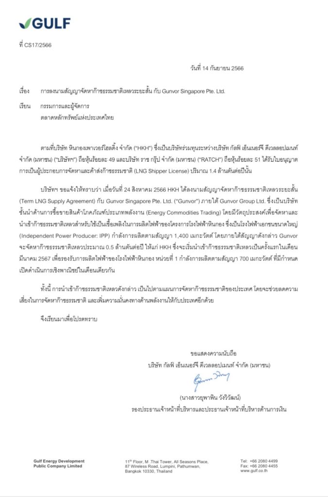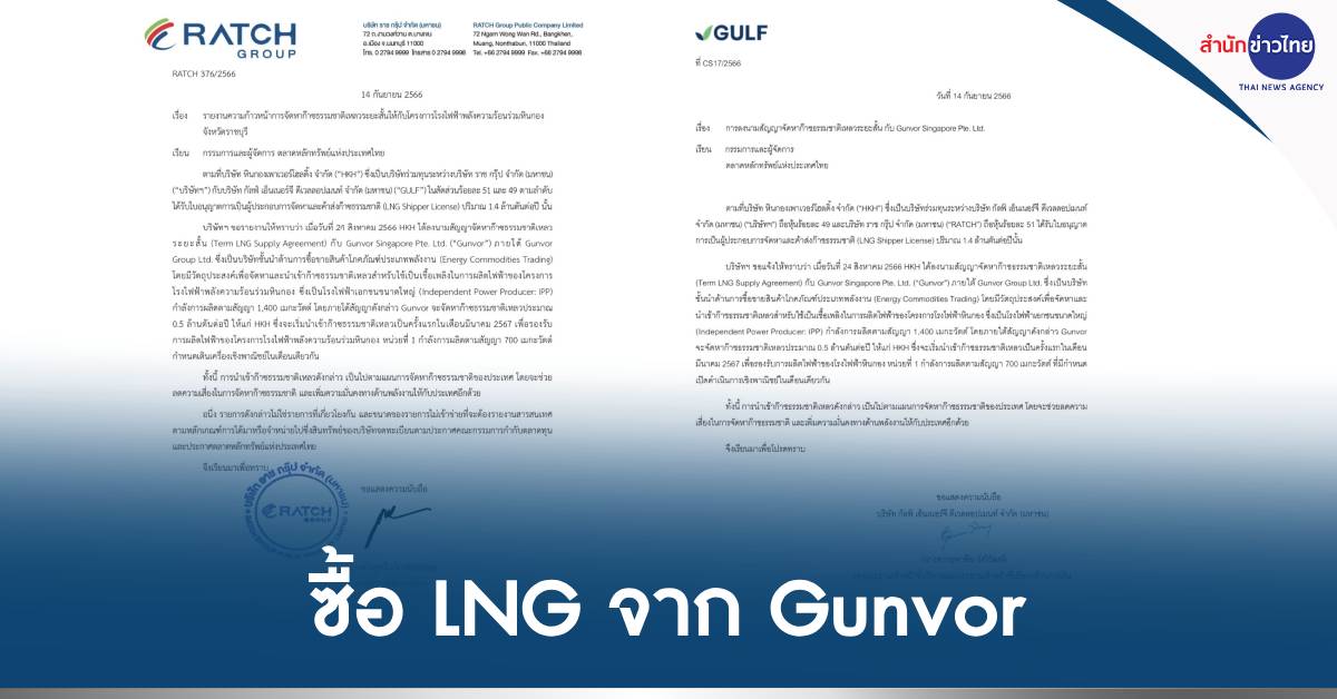 กรุงเทพฯ 15 ก.ย.-หินกองเพาเวอร์ฯ บริษัทร่วมทุน RATCH-GULF ลงนามซื้อ LNG จาก Gunvor Singapore 0.5 ล้านตัน เริ่ม มี.ค.67