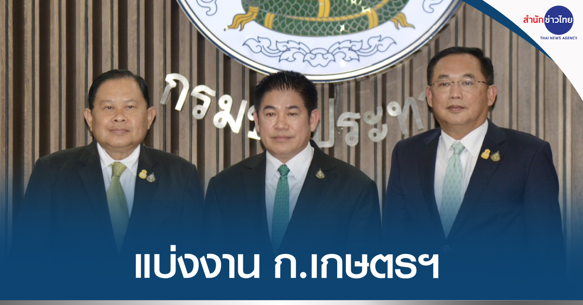 กรุงเทพฯ 15 ก.ย. – “ธรรมนัส” ลงนามแบ่งงานกระทรวงเกษตรฯ คุมเองทั้งกรมชลประทาน กรมส่งเสริมการเกษตร ส.ป.ก. กยท. ส่วน รมช.อีก 2 คน กำกับดูแลคนละ 4 หน่วยงาน โดย “รมช.ไชยา” คุมกรมปศุสัตว์ ส่วน “รมช.อนุชา” คุมกรมการข้าว