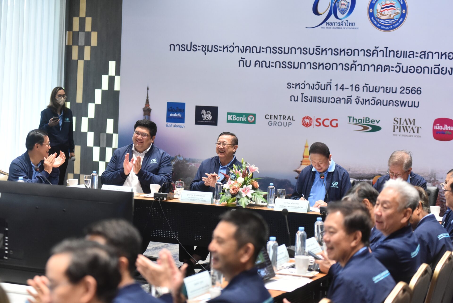 กรุงเทพฯ 15 ก.ย. – หอการค้าไทยและสภาหอการค้าฯ จัดประชุมคณะกรรมการบริหารฯ สัญจร จ.นครพนม ระดมความคิดหอการค้าฯ และผู้ประกอบการภาคอีสาน 20 จังหวัด ชงรัฐบาลใหม่กระตุ้นเศรษฐกิจในพื้นที่ ขณะที่เสียงภาคเอกชนอีสานเห็นด้วย รัฐบาลควรเร่งส่งเสริมท่องเที่ยว ดึงเม็ดเงินต่างชาติกระตุ้นเศรษฐกิจ พร้อมหวังมาตรการอัดฉีดเม็ดเงินทำได้เร็ว หนุนเศรษฐกิจชุมชนให้คึกคักยิ่งขึ้น