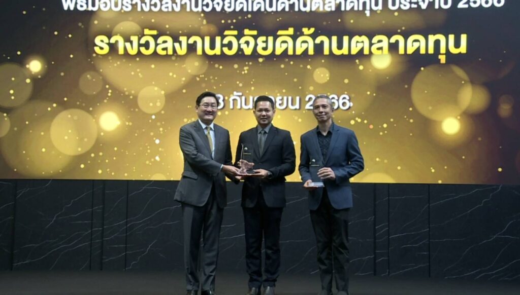 • รางวัลผลงานวิจัยดีเด่นด้านตลาดทุน ได้แก่ งานวิจัยในหัวข้อ “Sustainability index and cost of debt: evidence from ASEAN market” โดยนายธิติวรรธก์ เศรษฐแสงศรี อาจารย์ที่ปรึกษา คือ รศ. ดร.ชัยยุทธ ผดุงศักดิ์สวัสดิ์ จากคณะพาณิชยศาสตร์และการบัญชี มหาวิทยาลัยธรรมศาสตร์