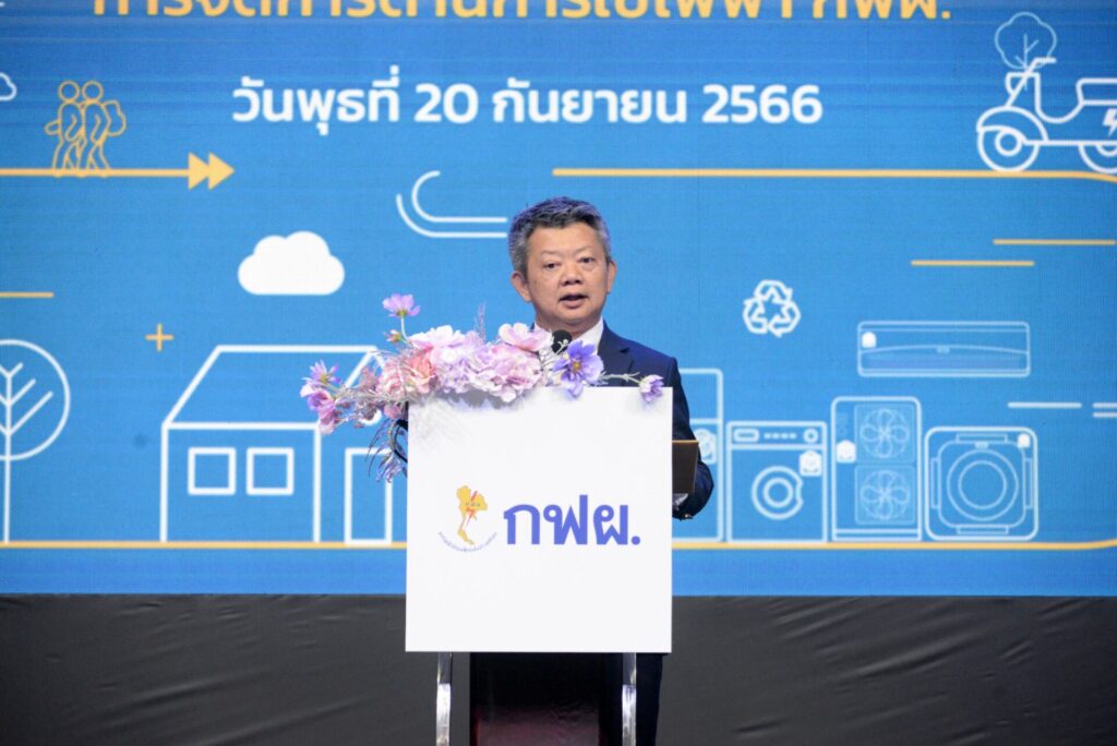 นายประเสริฐศักดิ์ เชิงชวโน รองผู้ว่าการยุทธศาสตร์ กฟผ. เปิดผยว่า กฟผ. มุ่งมั่นพัฒนานวัตกรรมและเทคโนโลยีเพื่อตอบโจทย์ความยั่งยืนในการใช้พลังงาน ทั้งการส่งเสริมการใช้ไฟฟ้าอย่างมีประสิทธิภาพ การเสริมสร้างทัศนคติด้านการประหยัดพลังงานแก่ผู้ใช้ไฟฟ้า และส่งเสริมการมีส่วนร่วมลดก๊ซเรือนกระจกในภาคประชาชนอย่างเป็นรูปธรรม เพื่อมุ่งสู่เป้าหมาย Carbon Neutrality ของประเทศ ซึ่งตลอดระยะเวลา 30 ปี ของการดำเนินงานการจัดการด้านการใช้ไฟฟ้าผ่านกลยุทธ์ 3 อ. ได้แก่ อุปกรณ์ อาคาร และอุปนิสัย เพื่อให้ครอบคลุมกลุ่มผู้ใช้ไฟฟ้าทั้งภาคที่อยู่อาศัย ภาคธุรกิจ และภาคอุตสาหกรรม จำนวนกว่า 40 โครงการ สามารถกระตุ้นให้เกิดการลดปริมาณการใช้ไฟฟ้ากว่า 35,600 ล้านหน่วยหรือประมาณ 1.78 แสนล้านบาท และนำไปสู่การลดปริมาณก๊าซคาร์บอนไดออกไซด์ที่ปล่อยสู่บรรยากาศลงกว่า 19.7 ล้านตันคาร์บอนไดออกไซด์