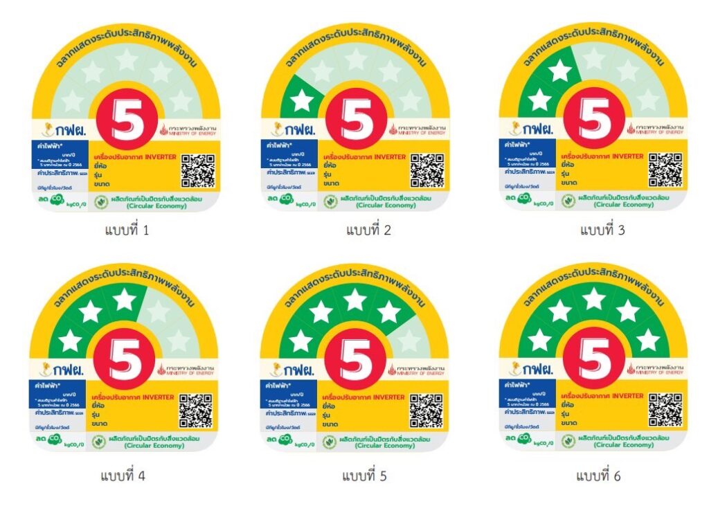 สำหรับฉลากเบอร์ 5 ประหยัดไฟรูปแบบใหม่ มีความแตกต่างจากฉลากเบอร์ 5 รูปแบบเดิม คือ เพิ่มเกณฑ์ประสิทธิภาพ จากเดิม 1-3 ดาว เป็น 1-5 ดาว เพื่อเพิ่มทางเลือกให้ผู้บริโภค ในการเลือกใช้อุปกรณ์ไฟฟ้าที่ประหยัดไฟได้มากกว่าเดิม