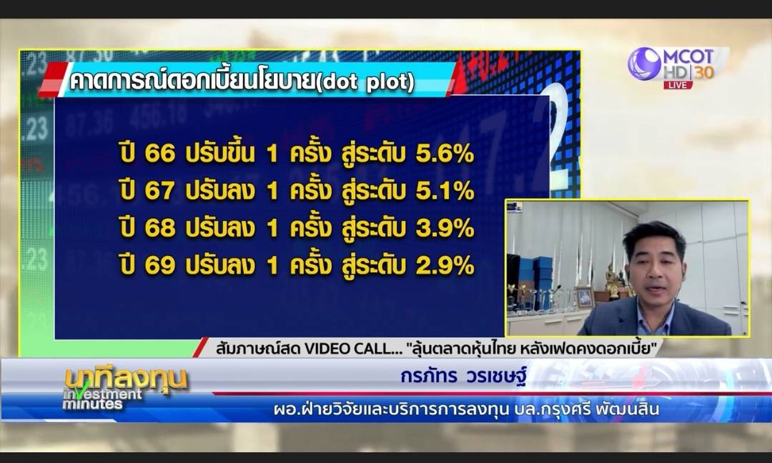 ส่วนการคาดการณ์เกี่ยวกับเศรษฐกิจสหรัฐนั้น เฟดปรับเพิ่มคาดการณ์จีดีพีปีนี้จาก 1.0 %สู่ 2.1% ในปีนี้ และขยายตัว 1.5%- 1.8% ใน3ปีถัดไป ข้อมูลบ่งชี้ว่า กิจกรรมทางเศรษฐกิจขยายตัวแข็งแกร่งขึ้น /การจ้างงานชะลอตัวลง อัตราว่างงานยังคงอยู่ในระดับต่ำ และจะยังคงปรับลดการถือครองพันธบัตรรัฐบาลสหรัฐและตราสารหนี้ที่มีสินเชื่อที่อยู่อาศัยเป็นหลักประกันการจำนอง (MBS)อีกด้วย
