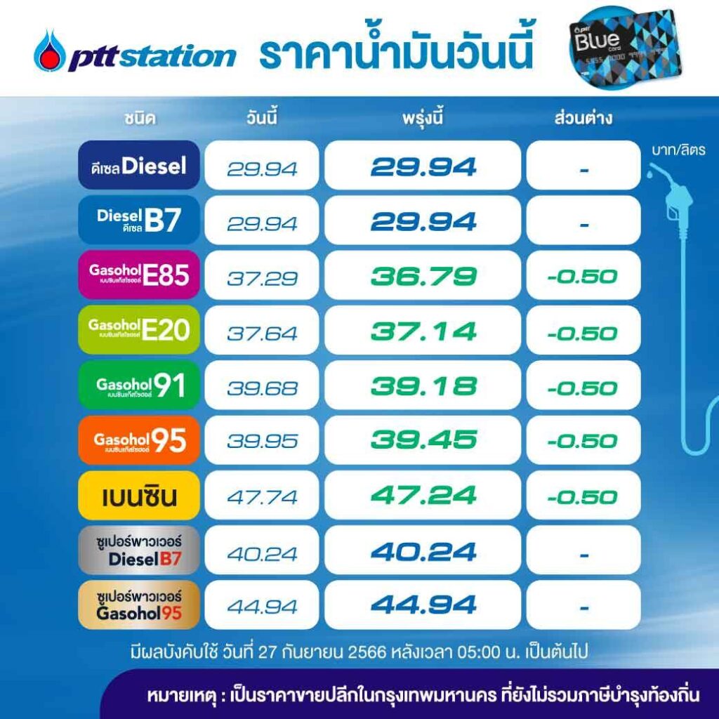 กรุงเทพฯ 26 ก.ย. – ปตท. – บางจากฯ ลดราคาน้ำมันกลุ่มเบนซิน – แก๊สโซฮอล์ 50 สต./ ลิตร ยกเว้นดีเซลราคาคงเดิม มีผล 27 ก.ย.66 เวลา 05.00 น.