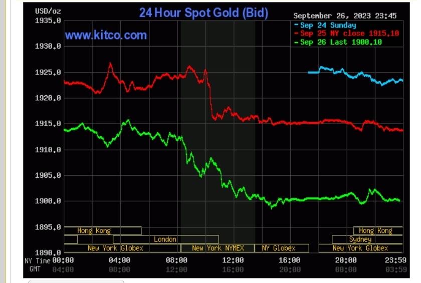 สำหรับวานนี้ (26 ก.ย.)สัญญาทองคำตลาด COMEX (Commodity Exchange) ส่งมอบเดือนธ.ค. ลดลง 16.80 ดอลลาร์ หรือ 0.87% ปิดที่ 1,919.80 ดอลลาร์/ออนซ์ ปิดลบติดต่อกันเป็นวันที่ 2 เนื่องจากการแข็งค่าของดอลลาร์และการพุ่งขึ้นของอัตราผลตอบแทนพันธบัตรรัฐบาลสหรัฐ นักวิเคราะห์คาดราคาทองอาจร่วงลงสู่ระดับ 1,900 ดอลลาร์ หากสหรัฐเปิดเผยดัชนี PCE ที่แข็งแกร่ง และบ่งชี้ว่าเฟดมีแนวโน้มปรับขึ้นอัตราดอกเบี้ยในเดือนพ.ย.