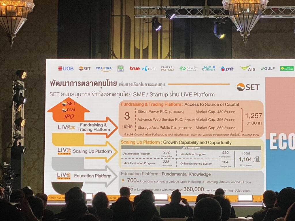 ตลาดหุ้นไทยยังเป็นแหล่งระดมทุน IPO อันดับต้นในอาเชียน จึงทำให้ตลาดหุ้นไทย มีมูลค่าตลาดรวม 20 ล้านล้านบาทในปัจจุบัน และในอีก 10 ปีข้างหน้าจะเติบโตได้ต่อเนื่อง และยังต้องส่งเสริมการระดมทุนให้สตาร์ทอัพและเอสเอ็มอี นับว่า ในช่วง 1 ปีที่ผ่านมา มีเอกชน 3 บริษัท ระดมทุนผ่าน Live Platform ระดมทุนไปกว่า 100 ล้านบาท มีมูลค่าตลาดราว 1.25 พันล้านบาท และยังมีตลาด MAI ที่มีความสำคัญ ตลาดหลักทรัพย์ฯ ต้องทำงานเชิงรุก ยกระดับคัดเลือกบริษัทจดทะเบียนคุณภาพเข้ามากระจายหุ้น เพื่อสร้างความเชื่อมั่นให้กับนักลงทุน การแจ้งข้อมูลของบริษัทจดทะเบียนให้เร็วขึ้น เพื่อให้นักลงทุนประกอบการตัดสินใจลงทุน การแจ้งเตือนนักลงทุน เมื่อเกิดความผิดปกติอย่างรวดเร็ว และเพิ่มความสะดวกให้บริษัทจะทะเบียน เข้ามาระดมทุนในตลาดหลักทรัพย์มากขึ้น