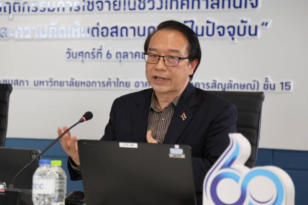 นายธนวรรธน์ พลวิชัย อธิการบดีมหาวิทยาลัยหอการค้าไทย เปิดเผยผลสำรวจประชาชนจำนวนทั้งสิ้น 1,280 ตัวอย่างทั่วประเทศ ถึงทัศนะต่อนโยบายเงินดิจิทัล 10,000 บาท พบว่า 76.4% คาดว่าจะใช้เงินดิจิทัล ส่วนผู้ที่มีรายได้เดือนละ 40,001 บาทขึ้นไป จำนวน 15.6% ระบุว่าจะไม่ใช้ โดยในส่วนของผู้ที่จะใช้เงินดิจิทัล อยากใช้ซื้อสินค้าในครัวเรือนมากที่สุด 24.5% รองลงมาคือใช้ซื้ออาหาร 21.0% ขณะเดียวกัน เมื่อถามว่าจะมีร้านค้าเข้าร่วมโครงการดิจิทัลหรือไม่ มีผู้ตอบแบบสอบถามว่าไม่แน่ใจมากที่สุด 38.4% เนื่องจากมีความกังวลเรื่องภาษี ยังไม่ทราบหลักเกณฑ์การเข้าร่วมโครงการที่ชัดเจน และคิดว่าจะได้รับเงินช้ากว่าการขายปกติ และ 33.8% ตอบว่าจะมีร้านค้าเข้าร่วมโครงการเพราะจะทำให้มียอดขายมากขึ้น อย่างไรก็ตาม 48.3% เชื่อว่าเงินดิจิทัลจะช่วยกระตุ้นเศรษฐกิจในพื้นที่ได้มาก และ 35.6% เชื่อว่าจะกระตุ้นเศรษฐกิจได้ปานกลาง