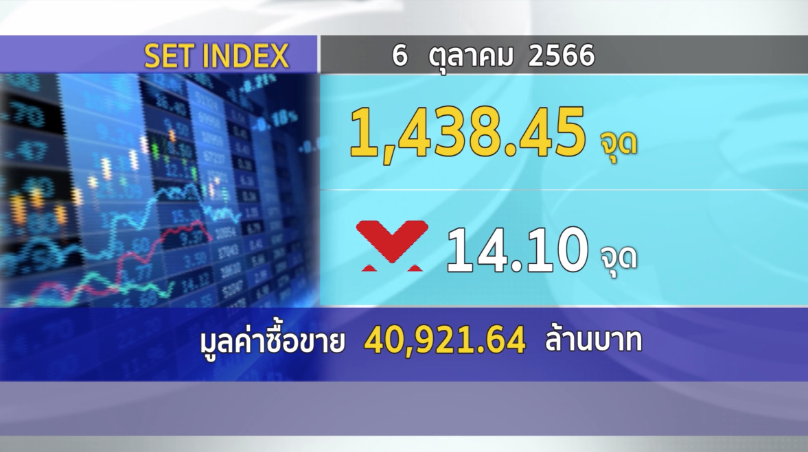 กทม. 6 ต.ค.- SET ปิดวันนี้ที่ 1,438.45 จุด ลดลง 14.10 จุด (-0.97%) มูลค่าซื้อขาย 40,921.64 ล้านบาท
