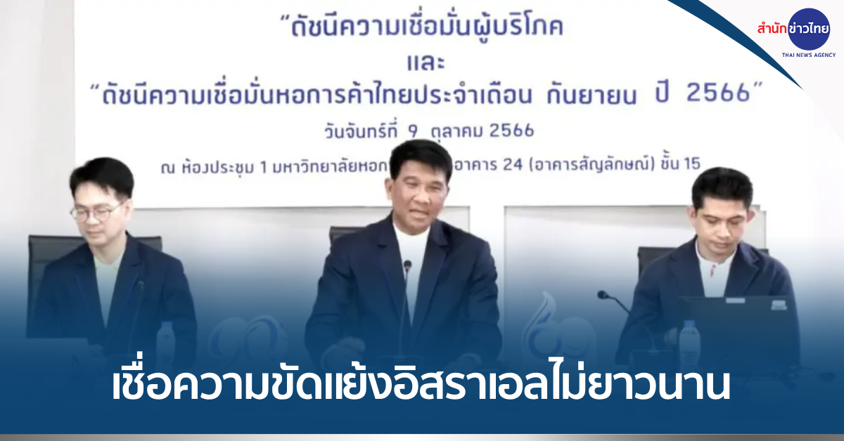 กรุงเทพฯ 9 ต.ค. – อธิการบดีมหาวิทยาลัยหอการค้าไทยและประธานที่ปรึกษาศูนย์พยากรณ์เศรษฐกิจและธุรกิจ เชื่อความขัดแย้งสงครามอิสราเอลและกลุ่มฮามาส จะไม่ยาวนานเหมือนกับรัสเซียและยูเครน หากไม่มีประเทศกลุ่มที่ 3 เข้ามาแทรกแซง ระบุการค้าไทยและอิสราเอลไม่มากนัก แต่ระยะสั้นกระทบราคาน้ำมันตลาดโลกขยับขึ้นไปเล็กน้อย
