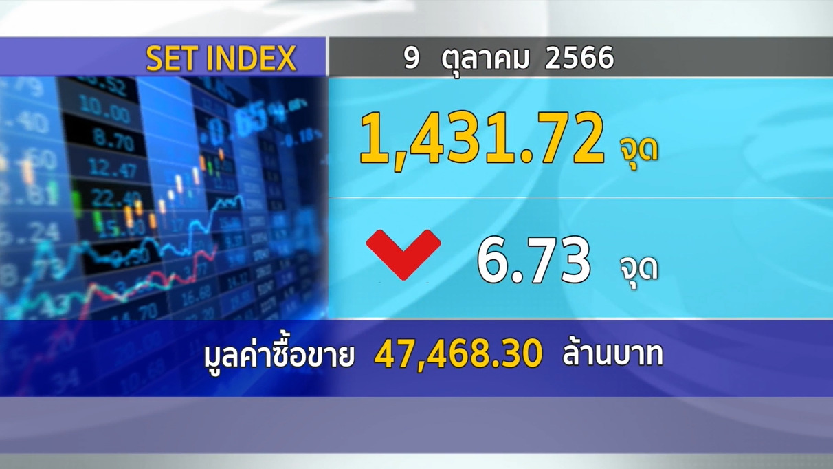 กทม. 9 ต.ค.-SET ปิดวันนี้ที่ 1,431.72 จุด ลดลง 6.73 จุด (-0.47%) มูลค่าซื้อขาย 47,468.30 ล้านบาท