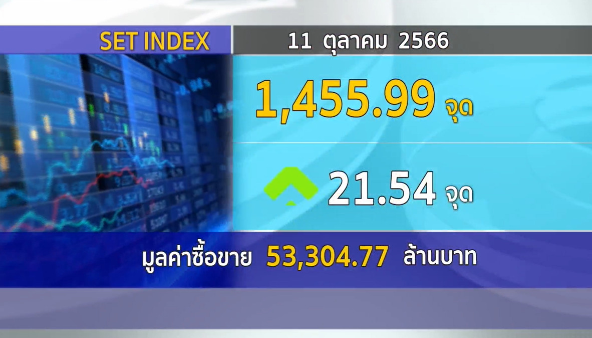 กทม. 11 ต.ค.-SET ปิดวันนี้ที่ 1,455.99 จุด เพิ่มขึ้น 21.54 จุด (+1.50%) มูลค่าซื้อขาย 53,304.77 ล้านบาท