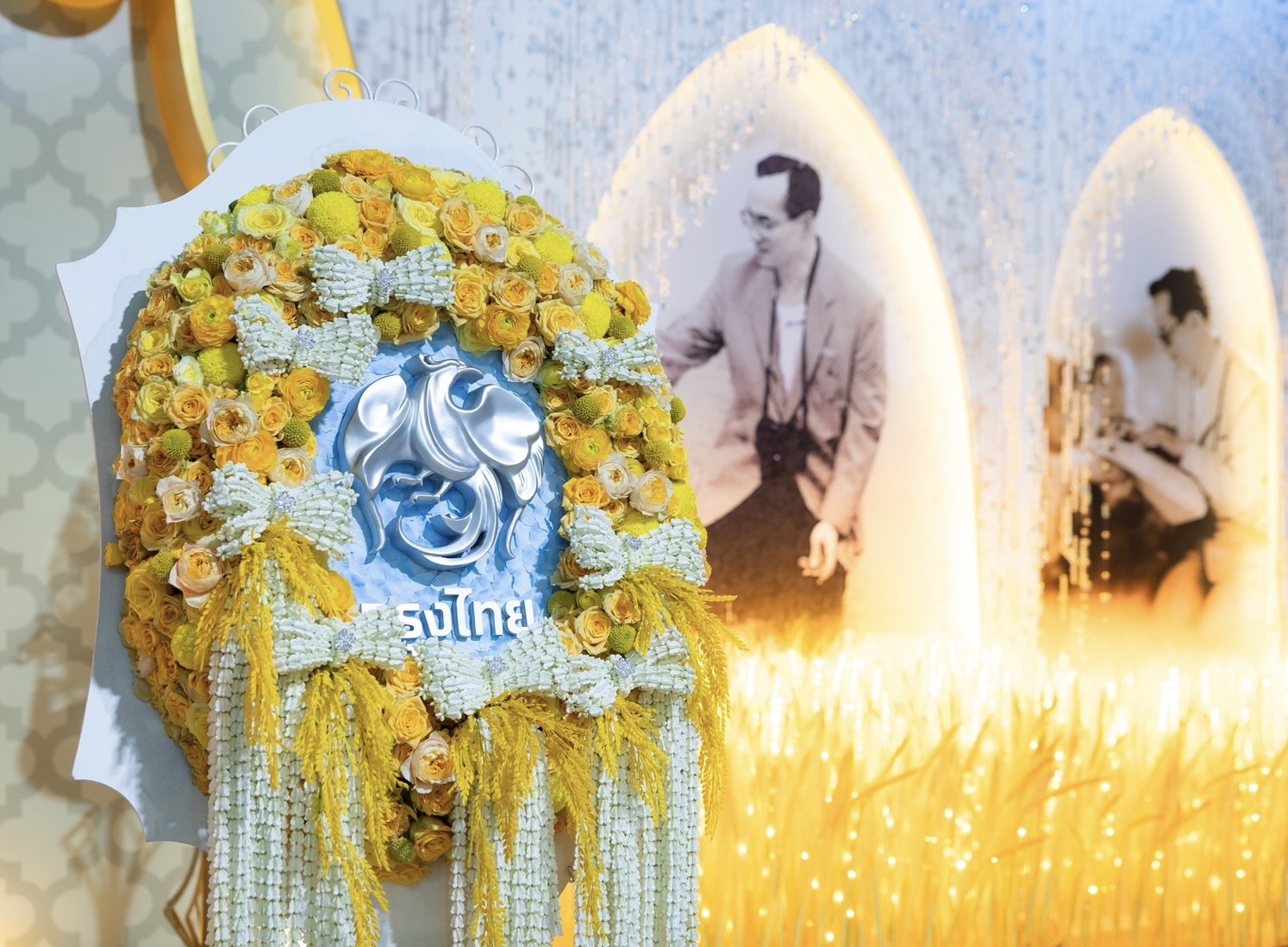ธนาคารกรุงไทย ได้จัดซุ้มเฉลิมพระเกียรติ พระบาทสมเด็จพระบรมชนกาธิเบศร มหาภูมิพลอดุลยเดชมหาราช บรมนาถบพิตร ภายใต้แนวคิด “หยาดน้ำทิพย์…ชโลมใจไทยทั่วหล้า” โดยจัดแสดงพระบรมรูปหล่อครึ่งพระองค์ เนื้อทองแดง ตกแต่งด้วยคริสตัลที่ร้อยเรียงเป็นเส้น ทอดสายจากด้านบน เปรียบเสมือนสายฝนที่โปรยปรายลงมาจากฟากฟ้า ส่องแสงระยิบดุจหยาดน้ำทิพย์ชโลมใจพสกนิกร ด้านล่างเป็นทุ่งรวงข้าวสีทอง เปรียบได้กับผลของพืชพรรณอันอุดมสมบูรณ์บนผืนแผ่นดินไทย และเล่าเรื่องผ่าน พระราชกรณียกิจที่เปี่ยมล้นไปด้วยพระเมตตา และพระวิริยะอุตสาหะที่สร้างคุณอเนกอนันต์แก่อาณาประชาราษฎร์ ซึ่งเป็นภาพในความทรงจำที่ไม่เคยเลือนหายไปจากใจพสกนิกร อาทิ โครงการแกล้งดิน และปลูกหญ้าแฝก โครงการกังหันน้ำชัยพัฒนา โครงการหน่วยแพทย์พระราชทาน และแนวคิดเศรษฐกิจพอเพียง : เกษตรทฤษฎีใหม่.-สำนักข่าวไทย