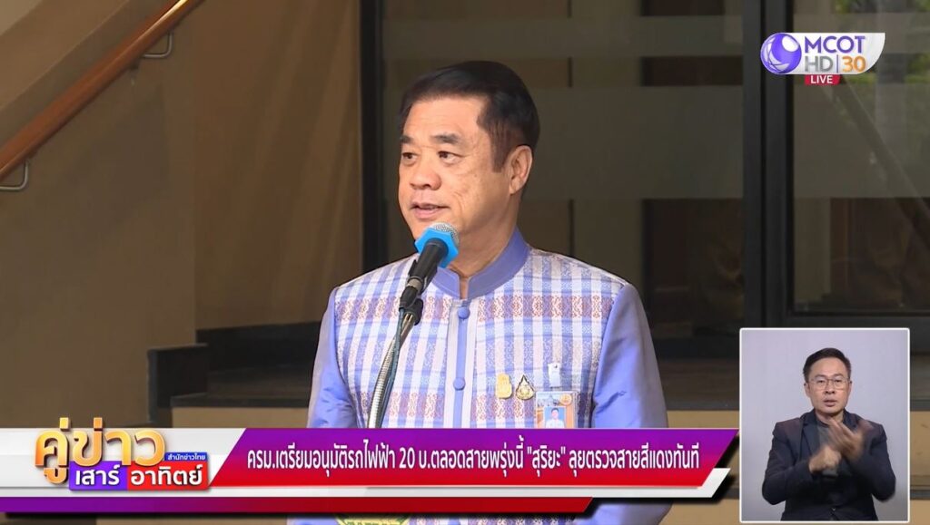 ผู้สื่อข่าวรายงานว่า ภายหลัง ครม. เห็นชอบพรุ่งนี้ (16 ต.ค.) นายสุริยะ จะลงตรวจความพร้อมการดำเนินนโยบาย Quick win ลดอัตราค่าโดยสารรถไฟฟ้า MRT สายสีม่วง และรถไฟฟ้าชานเมืองสายสีแดง 20 บาท ตลอดสาย ณ สถานีกลางกรุงเทพอภิวัฒน์ ตั้งแต่เวลา 11.00 น. เป็นต้นไป