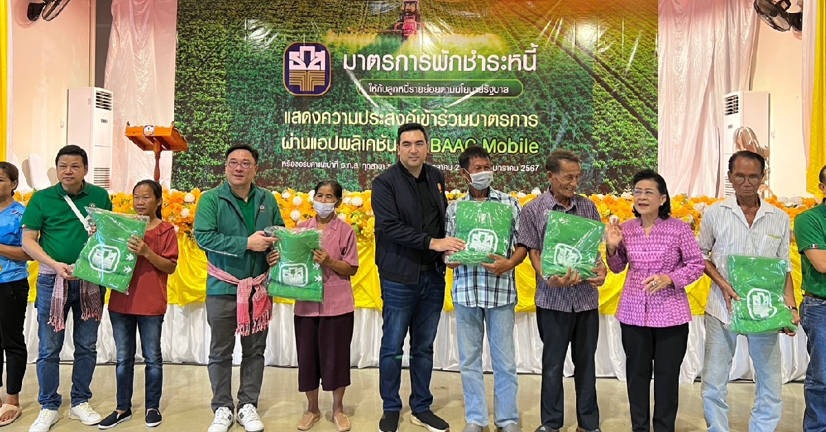 นายจุลพันธ์ อมรวิวัฒน์ รัฐมนตรีช่วยว่าการกระทรวงการคลังและประธานกรรมการธนาคารเพื่อการเกษตรและสหกรณ์การเกษตร (ธ.ก.ส.) พร้อมด้วยนายยุวพล วัตถุ รองผู้จัดการ ธ.ก.ส. ลงพื้นที่ติดตามการดำเนินงานการรับเกษตรกรเข้าสู่มาตรการพักชำระหนี้ มูลหนี้ไม่เกิน 300,000 บาท ณ 30 กันยายน 2566 ขณะนี้รับสิทธิกว่า 2 ล้านราย ยอดหนี้ 283,000 ล้านบาท ซึ่ง ธ.ก.ส. เปิดให้บริการตรวจสอบสิทธิและแจ้งความประสงค์เข้าร่วมมาตรการผ่านแอปพลิเคชัน “BAAC Mobile” ตั้งแต่วันที่ 1 ตุลาคม 2566-31 มกราคม 2567 โดยติดตามขั้นตอนการปฏิบัติงาน ทั้งการตรวจสอบสิทธิ การตรวจสุขภาพหนี้ การทำเอกสารข้อตกลงต่อท้ายสัญญา และการฟื้นฟูศักยภาพในการประกอบอาชีพ