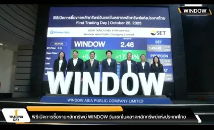 ตลาดหลักทรัพย์ฯ ต้อนรับ บมจ. วินโดว์ เอเชีย เข้าจดทะเบียนและเริ่มซื้อขายในตลาดหลักทรัพย์ฯวันนี้ ในกลุ่มอสังหาริมทรัพย์และก่อสร้าง หมวด วัสดุก่อสร้าง โดยใช้ชื่อย่อในการซื้อขายหลักทรัพย์ว่า “WINDOW” ณ ราคาIPO 1,865 ล้านบาท ในราคาหุ้นละ 2.10 บาท คิดเป็นมูลค่าระดมทุน 512.82 ล้านบาท เปิดเทรดวันแรกที่ 2.84 บาทเพิ่มขึ้น 0.74 บาท (+35.24%)