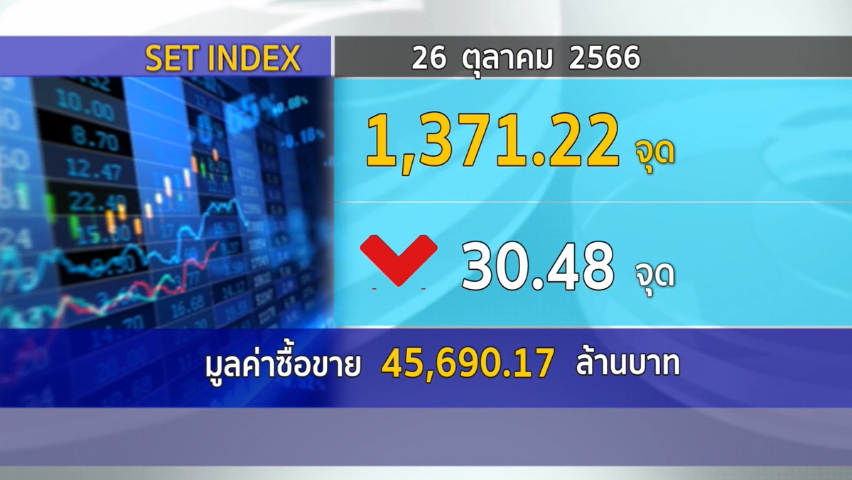กทม. 26 ต.ค.-SET ปิดวันนี้ที่ 1,371.22 จุด ลดลง 30.48 จุด (-2.17%) มูลค่าซื้อขาย 45,690.17 ล้านบาท