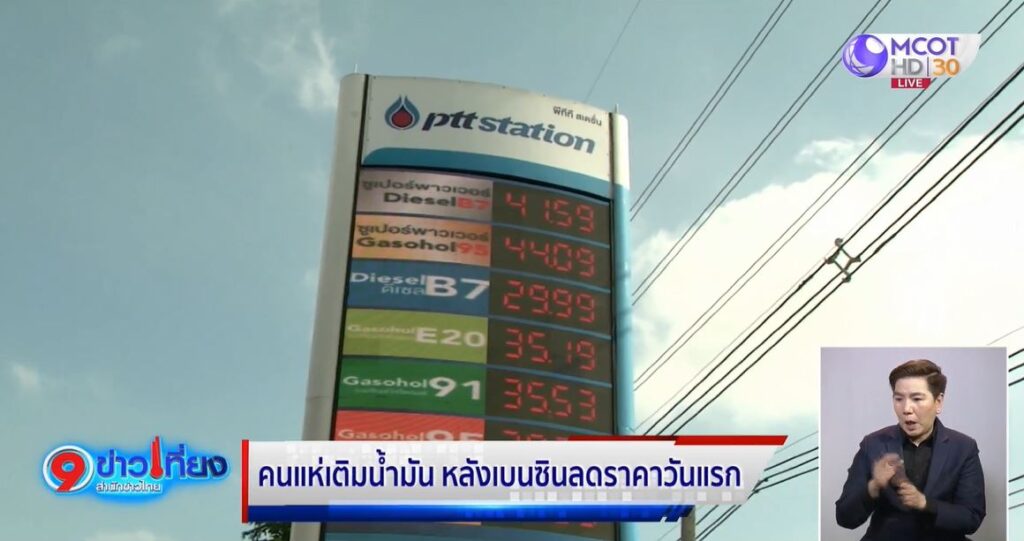 ปตท.-บางจาก ประกาศปรับลดราคาน้ำมันแก๊สโซฮอล์ E85 และ E20 ราคา 0.80 บาทต่อลิตร ส่วนเบนซิน แก๊สโซฮอล์ 95 และน้ำมันซูเปอร์พาวเวอร์ แก๊สโซฮอล์ 95 ปรับลดราคา 1 บาทต่อลิตร แก๊สโซฮอล์ 91 ปรับลดราคา 2.50 บาทต่อลิตร