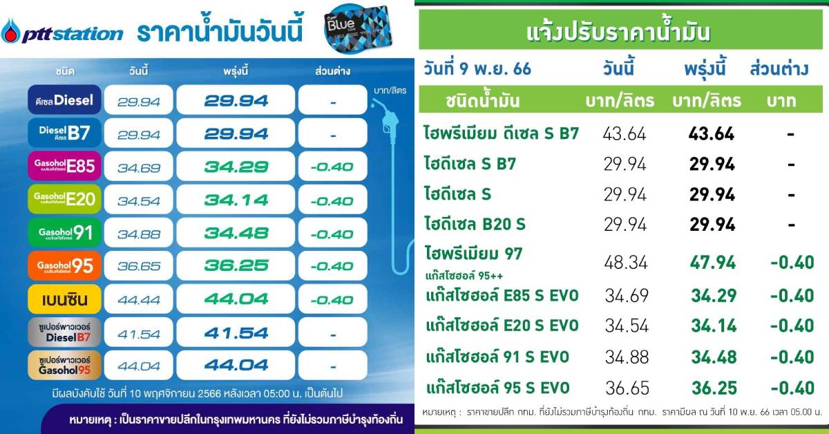 กทม. 9 พ.ย.-PTT Station บางจาก ปรับราคาขายปลีกน้ำมันเบนซินและแก๊สโซฮอล์ทุกชนิดลง 40 สตางค์/ลิตร ส่วน Premium GSH95 Premium ดีเซล และกลุ่มดีเซลคงเดิม มีผล 10 พ.ย. 2566 เวลา 05.00 น. เป็นต้นไป