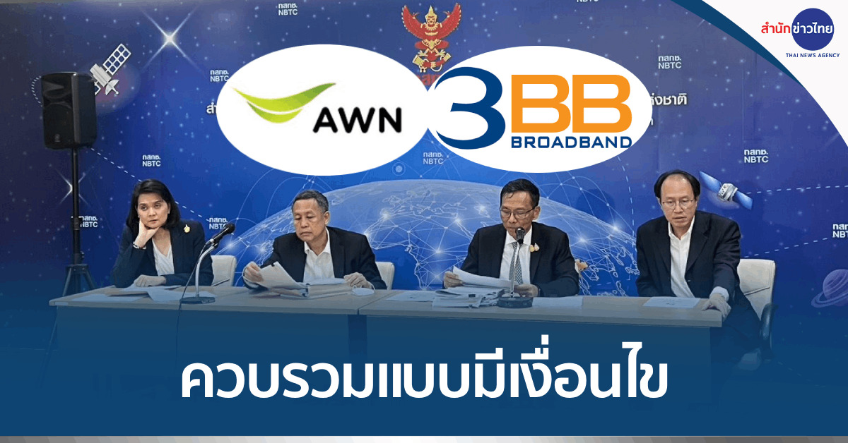 สำนักงานคณะกรรมการกิจการกระจายเสียง กิจการโทรทัศน์ และกิจการโทรคมนาคมแห่งชาติแจ้งว่า ที่ประชุมบอร์ด กสทช. วันนี้ (10 พ.ย.) ได้พิจารณาการรวมธุรกิจระหว่างบริษัท แอดวานซ์ ไวร์เลส เน็ทเวอร์ค จำกัด (บริษัท AWN) และบริษัท ทริปเปิลที บรอดแบนด์ จำกัด (มหาชน) (บริษัท TTTBB) โดยที่ประชุม กสทช. เสียงข้างมากอนุญาตการรวมธุรกิจ และกำหนดข้อกังวล (Points of concern) และเห็นชอบเงื่อนไขหรือมาตรการเฉพาะให้ปฏิบัติ เช่น