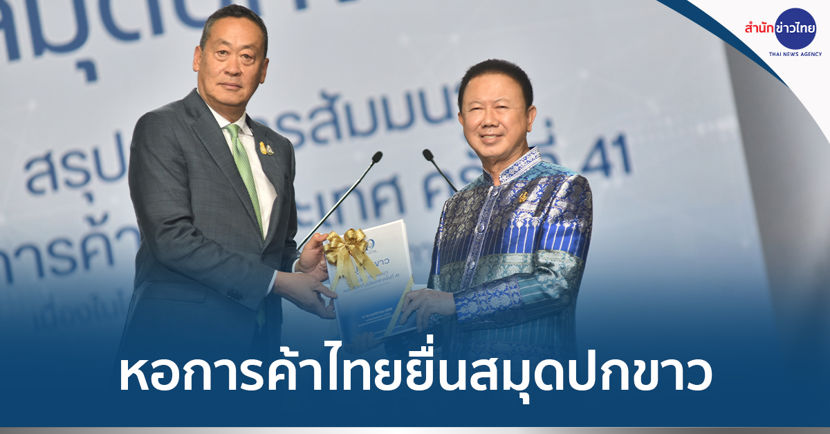 ไบเทค 19 พ.ย.-ประธานกรรมการหอการค้าไทยและสภาหอการค้าแห่งประเทศไทย ยื่นสมุดปกขาวต่อนายกรัฐมนตรี บนเวทีสรุปผลการสัมมนาหอการค้าทั่วประเทศ ครั้งที่ 41 เพื่อมุ่งหวังนำเสนอแนวทางของภาคเอกชนไปต่อยอดพลิกฟื้นเศรษฐกิจไทยให้กลับมาดีขึ้น ย้ำภาคเอกชนยินดียกระดับรายได้และลดความเหลื่อมล้ำให้กับประชาชนเต็มที่