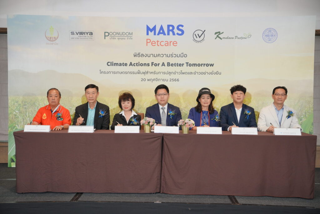 กรุงเทพฯ 20 พ.ย. – มาร์ส เพ็ทแคร์ ร่วมลงนามกับ 6 พันธมิตรคู่ค้าข้าวโพดและข้าวเพื่อผลิตอาหารสัตว์ ขับเคลื่อนโครงการเกษตรกรรมฟื้นฟู (Regenerative Agriculture) พลิกโฉมด้วย Climate Smart Agriculture ตามเป้าหมายความยั่งยืนบริษัทแม่มุ่งสู่ Net Zero ปี 93