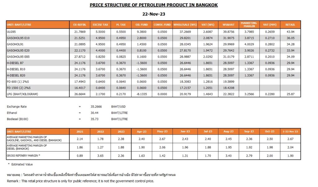 อย่างไรก็ตาม ค่าการตลาดคือ ส่วนที่เป็นต้นทุน ค่าใช้จ่าย และกำไรของธุรกิจค้าปลีกน้ำมันทั้งระบบ ตั้งแต่การจัดการคลังน้ำมัน การขนส่งน้ำมันมายังสถานีบริการ รวมถึงการให้บริการของสถานีบริการที่เติมน้ำมันแต่ละลิตรให้กับประชาชน