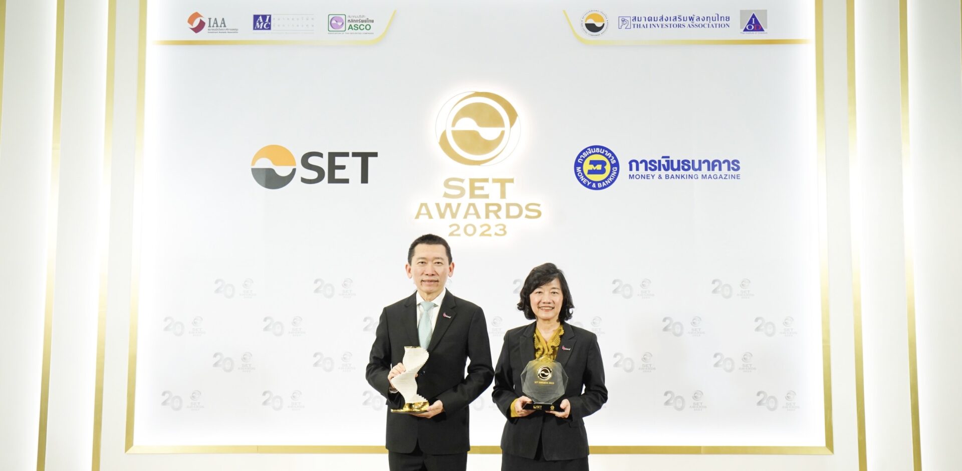 งาน SET Awards 2023 จัดโดยตลาดหลักทรัพย์แห่งประเทศไทย ร่วมกับวารสารการเงินธนาคาร เพื่อมอบรางวัลให้กับบริษัทจดทะเบียนที่มีผลประกอบการที่โดดเด่น และดำเนินธุรกิจอย่างมีความรับผิดชอบ โดยคำนึงถึงสิ่งแวดล้อมสังคม ภายใต้หลักบรรษัทภิบาล หรือ ESG (Environmental, Social and Governance) โดยงานในปีนี้จัดขึ้น ณ อาคารตลาดหลักทรัพย์แห่งประเทศไทย.-สำนักข่าวไทย