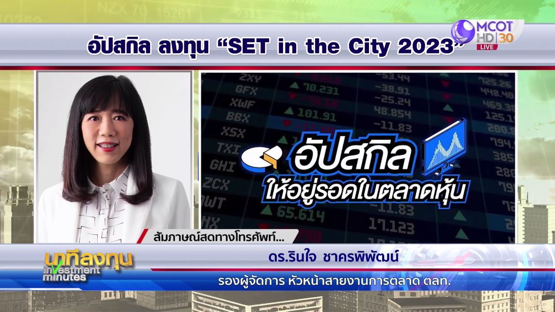 24 พ.ย. – SET in the City 2023 เสาร์-อาทิตย์นี้ ที่ตลาดหลักทรัพย์ฯ พบกับกูรูตัวจริง ที่จะมาแนะนำแนวทางการอัปสกิลให้อยู่รอดในตลาดหุ้น ด้วยเวิร์กชอปกว่า 20 คลาสที่น่าสนใจ. – สำนักข่าวไทย