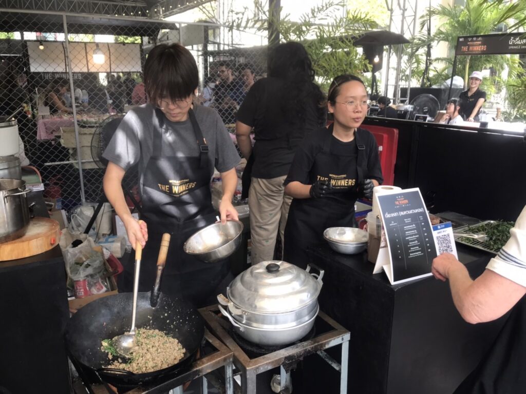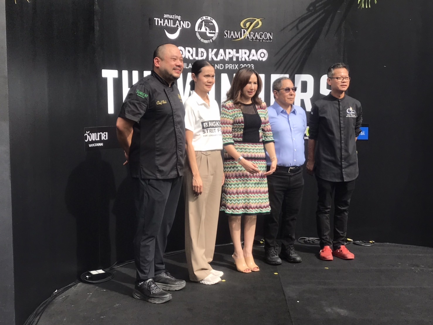 คุณจีรพร ปักปิ่นเพชร ประธานเจ้าหน้าที่บริหาร บริษัท ออล ออฟ ลัค จำกัด (ผู้หญิงใส่เสื้อขาว กางเกงน้ำตาล) กล่าวเพิ่มเติมว่า ถือเป็นครั้งแรกของการรวม 10 สุดยอดแชมป์กะเพราจากเวทีมหกรรมกะเพราเขย่าโลก “เวิลด์ กะเพรา ไทยแลนด์ กรังปรีด์ 2023” จาก 10 ร้านดังทั่วไทย กับเมนูผัดกะเพราทั้งแบบดั้งเดิมและเมนูกะเพราสุดครีเอทีฟให้เลือกชิมมากมายอาทิ กะเพราเนื้อล้านนา จากร้านกะเพราตาหนวด, เมนู 9 ซาวห้า กะเพราแห่งสยาม จากร้านกะเพราซาวห้า, กะเพราเนื้อ NK๒๕ (เอ็นเค เทว็นตี้ไฟฟ์) หนองคายวากิว จากร้านเดอะ เฟรนด์ชิป หนองคาย, เมนูกะเพราชาวอยุธยา จากร้าน สำเภานาวา, เมนูกะเพราร้อนแรง จากครัวบินหลา, เมนูกินกะเพรา จากร้านกินกะเพรา, เมนูลมหวนชวนหอม จากร้านลมหวนชวนหอม, กะเพราอีเคย จากร้านสะหวา และยังมีเมนูไฮไลท์อย่าง ผัดข้าวซอยแห้งเนื้อซอสกะเพราป่า จากร้านครัวเนื้อหอม, เมนูกะเพราบียอนด์ จากร้านจิตสดชื่น และ แฮมเบิร์กแกงคั่วกะเพรา จากร้าน เจี่ยะเหลา
