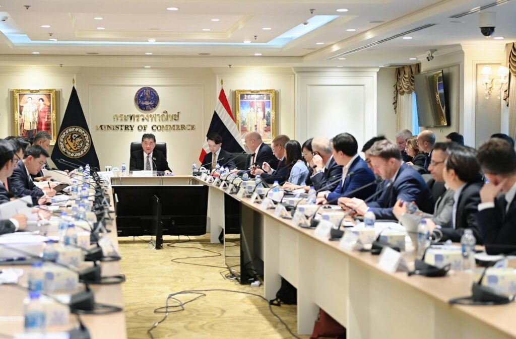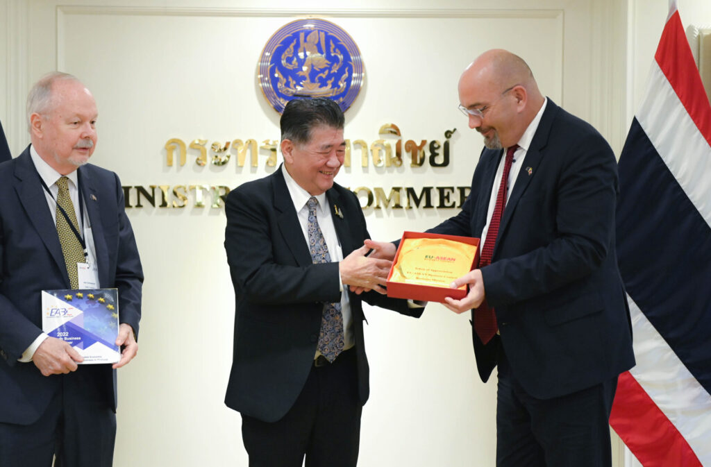 นอกจากนี้ ยังได้ให้ข้อมูลเกี่ยวกับแผนในการเร่งจัดทำความตกลงการค้าเสรี หรือ FTA กับ สหภาพยุโรป หรืออียู ที่มีเป้าหมายสรุปการเจรจาให้ได้ภายในปี 2568 เพื่อเพิ่มศักยภาพการค้าการลงทุนระหว่าง ไทยและอียูอย่างมีนัยสำคัญ รวมถึงแผนที่จะทบทวนและปรับปรุงแก้ไขกฎหมาย เพื่อสร้างระบบนิเวศน์ที่เอื้อต่อการประกอบธุรกิจการลงทุน และรองรับการเปลี่ยนแปลงของสถานการณ์โลก และเห็นว่าในการปฏิบัติตามกฎระเบียบการค้าใหม่ ๆ ทุกประเทศและทุกฝ่ายควรดำเนินการร่วมกันอย่างฉันมิตร คำนึงถึงข้อเท็จจริง และระดับความแตกต่าง มีความยืดหยุ่นในการปฏิบัติตาม และระยะเวลาการปรับตัวของแต่ละประเทศ ทั้งนี้ ตนให้ความสำคัญกับการส่งเสริมความร่วมมืออย่างใกล้ชิดระหว่างภาครัฐ-เอกชน รวมถึงเอกชน-เอกชนในส่วนผู้แทนภาคธุรกิจของฝั่งยุโรปได้แสดงความยินดีที่ FTA ไทย–อียู กลับมาเจรจาอีกครั้ง โดยพร้อมสนับสนุนและผลักดันให้ได้ข้อสรุปโดยเร็ว เพื่อต่อยอดโอกาสทางธุรกิจและอำนวยความสะดวกทางการค้าให้ภาคเอกชนและยังได้หยิบยกประเด็นการค้าอื่น ๆ เช่น ทรัพย์สินทางปัญญา การควบคุมราคาสินค้า พ.ร.บ. การประกอบธุรกิจของคนต่างด้าว ขึ้นหารือกับกระทรวงพาณิชย์ โดยได้รับทราบนโยบายและข้อมูลที่ชัดเจน เพื่อ ประโยชน์ในการดำเนินธุรกิจและวางแผนการค้าการลงทุนต่อไป