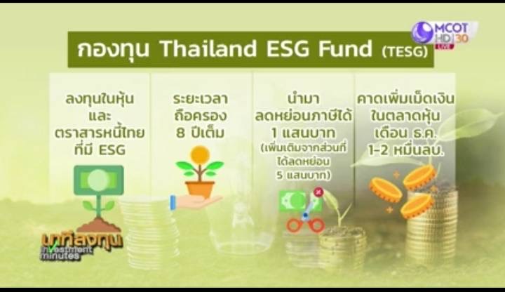 ทั้งนี้ กองทุนรวม Thai ESG เป็นกองทุนที่มีนโยบายการลงทุนในทรัพย์สินด้านความยั่งยืนที่มีความหลากหลายที่ผู้ออกทรัพย์สินนั้นเป็นภาครัฐหรือกิจการที่จัดตั้งขึ้นตามกฎหมายไทย ซึ่ง ก.ล.ต. พร้อมให้การสนับสนุน เพื่อให้ประชาชนได้มีโอกาสเลือกลงทุนในกองทุนรวมที่ส่งเสริมความยั่งยืนของประเทศไทย โดยได้รับสิทธิประโยชน์ทางภาษีจากการลงทุนในกองทุนรวมดังกล่าวได้ตั้งแต่ปีภาษี 2566 นี้