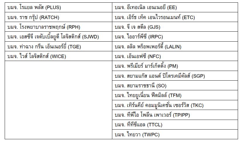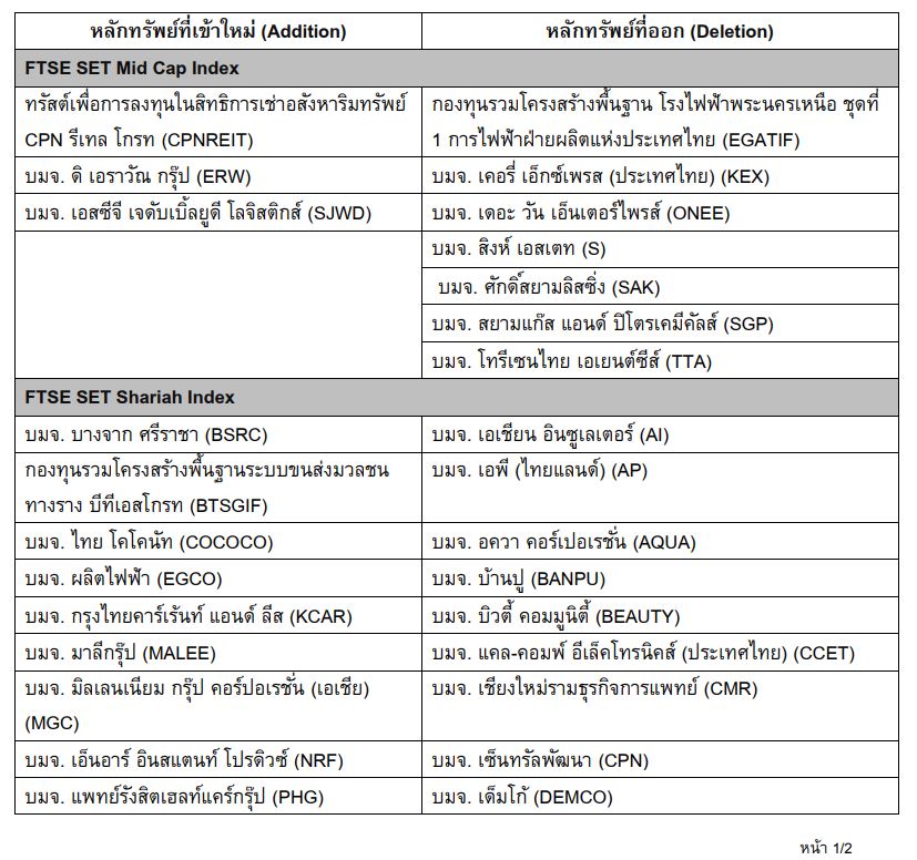 สำหรับผลการคัดเลือกการทบทวนรายชื่อหลักทรัพย์ชุดใหม่ที่จะใช้ในการคำนวณ FTSE SET Index Series มีผลวันที่ 18 ธันวาคม 2566 เป็นต้นไป มีข้อสรุปดังนี้