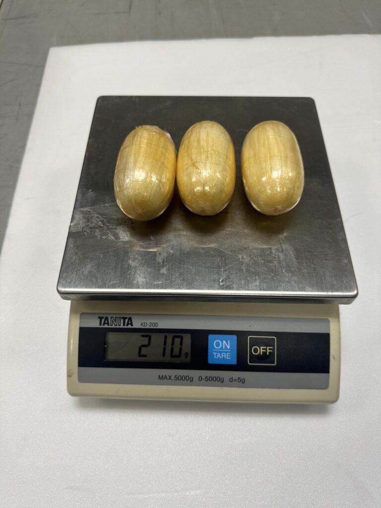 นอกจากนี้ กรมศุลกากร และชุดปฏิบัติการ AITF ได้ร่วมกันตรวจสอบผู้โดยสารระหว่างประเทศที่มีความเสี่ยงในการลักลอบลำเลียงยาเสพติดเข้ามาในราชอาณาจักร ณ ท่าอากาศยานสุวรรณภูมิ โดยได้จับกุมผู้โดยสารหญิง สัญชาติเคนยา เดินทางมาจากเมืองแอดดิสอาบาบา ประเทศเอธิโอเปีย ปลายทางท่าอากาศยานสุวรรณภูมิ ผลการตรวจค้น พบยาเสพติดให้โทษประเภท 2 โคคาอีน ซุกซ่อนอยู่ในกระเป๋าถือติดตัวขึ้นเครื่องบินและซุกซ่อนไว้ในร่างกายภายในช่องทวาร น้ำหนักรวมสิ่งห่อหุ้ม 1,240 กรัม มูลค่า 3.72 ล้านบาท