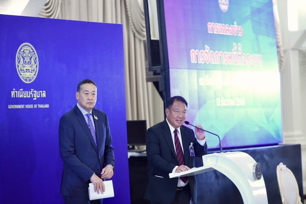 นายเศรษฐา ทวีสิน นายกรัฐมนตรีรัฐมนตรีว่าการกระทรวงการคลัง แถลงข่าวจัดการหนี้ทั้งระบบ โดยมีนายกฤษฎา จีนะวิจารณะ และนายจุลพันธ์ อมรวิวัฒน์ รัฐมนตรีช่วยว่าการกระทรวงการคลัง และผู้แทนหน่วยงานที่เกี่ยวข้องร่วมแถลง ประกอบด้วย ปลัดกระทรวงการคลัง ปลัดกระทรวงศึกษาธิการ ปลัดกระทรวงเกษตรและสหกรณ์ ผู้ว่าการธนาคารแห่งประเทศไทย เลขาธิการคณะกรรมการคุ้มครองผู้บริโภค ผู้อำนวยการสำนักงานเศรษฐกิจการคลัง ผู้จัดการกองทุนเงินให้กู้ยืมเพื่อการศึกษา ผู้อำนวยการธนาคารออมสิน ผู้จัดการธนาคารเพื่อการเกษตรและสหกรณ์ และนายกิตติรัตน์ ณ ระนอง ที่ปรึกษานายกรัฐมนตรีร่วมแถลง