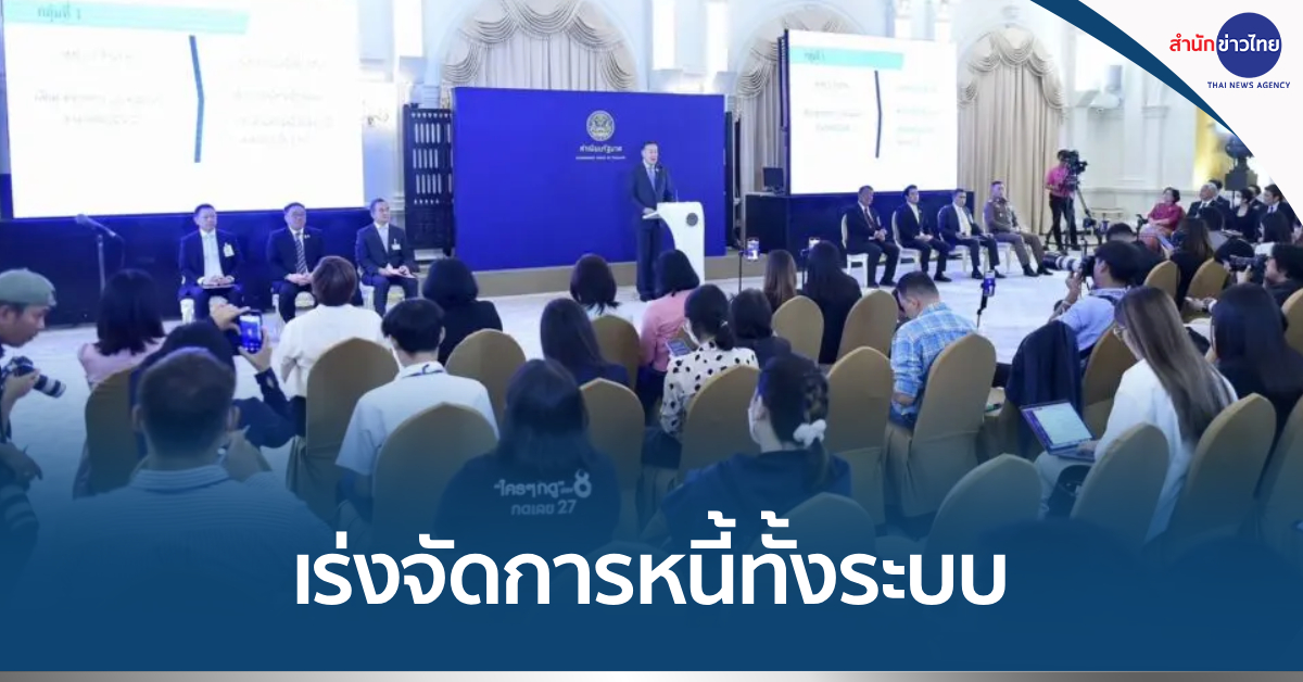 ทำเนียบฯ 12 ธ.ค. – นายกรัฐมนตรี ย้ำแก้ปัญหาหนี้ทั้งระบบให้จบภายในรัฐบาลนี้ ห่วงหนี้บัตรเครดิตอาการหนัก 67,000 ล้านบาท ดึง ธ.ก.ส. ออมสิน สางหนี้ครู-ตำรวจ