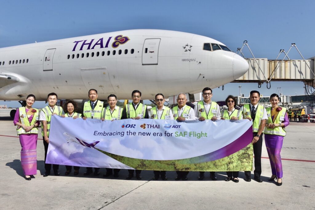 โดยการบินไทย ร่วมมือกับ บริษัท ปตท. น้ำมันและการค้าปลีก จำกัด (มหาชน) หรือ OR ในการนำเชื้อเพลิงอากาศยานแบบยั่งยืน : Sustainable Aviation Fuel (SAF) มาใช้นำร่องกับเที่ยวบินของการบินไทยในเส้นทางภูเก็ต-กรุงเทพฯ เพื่อแสดงถึงการตระหนักในความสำคัญของสิ่งแวดล้อมและการร่วมลงมือปฏิบัติอย่างเป็นรูปธรรม โดยเชื้อเพลิง SAF มีอัตราการปล่อยก๊าคาร์บอนไดออกไซด์ตลอดวงจรชีวิตน้อยกว่าเชื้อเพลิงอากาศยานโดยทั่วไป และสามารถลดการปล่อยก๊าซคาร์บอนไดออกไซด์ได้สูงถึง 80 เปอร์เซ็นต์ เมื่อเทียบกับเชื้อเพลิงโดยปกติ อีกทั้ง สามารถใช้ผสมในน้ำมันเครื่องบินในปัจจุบัน (Jet A1) ได้ทันทีและมีความปลอดภัย การจัดเที่ยวบินที่ใช้เชื้อเพลิง SAF ที่เป็นมิตรกับสิ่งแวดล้อมในครั้งนี้ ถือเป็นจุดเริ่มต้นที่ดีในการช่วยรักษาสิ่งแวดล้อมอย่างยั่งยืน
