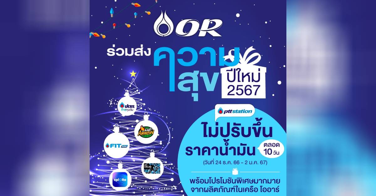 นายดิษทัต ปันยารชุน ประธานเจ้าหน้าที่บริหาร บริษัท ปตท. น้ำมันและการค้าปลีก จำกัด (มหาชน) หรือ โออาร์ เปิดเผยว่า ช่วงเทศกาลปีใหม่ที่กำลังจะมาถึงนี้ โออาร์ ได้เตรียมความพร้อมเพื่อรองรับการเดินทางท่องเที่ยว และการเดินทางกลับภูมิลำเนาของประชาชน โดยได้สำรองน้ำมันทั้งที่สถานีบริการ พีทีที สเตชั่น และคลังน้ำมันของ โอร์อาร์ ทั่วประเทศให้มีน้ำมันเพียงพอ และจะไม่ปรับขึ้นราคาน้ำมันเป็นเวลา 10 วัน ระหว่างวันที่ ระหว่างวันที่ 24 ธันวาคม 2566 – 2 มกราคม 2567 ถึงแม้ราคาน้ำมันในตลาดโลกจะปรับตัวสูงขึ้น และหากราคาน้ำมันในตลาดโลกปรับตัวลดลง โออาร์ ก็จะปรับราคาน้ำมันลงด้วย พร้อมทั้งจัดเตรียมให้ พีทีที สเตชั่น เป็นจุดแวะพักที่จะช่วยเติมเต็มความสุขให้ทั้งผู้คน สังคม และชุมชน ตลอดช่วงเทศกาลปีใหม่นี้
