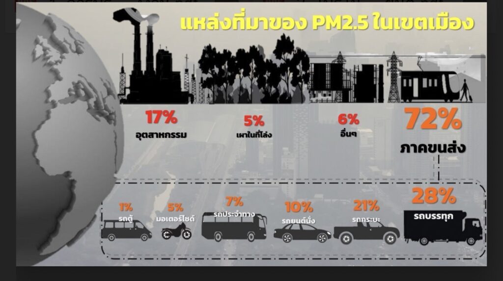 นายชัชชาติ สิทธิพันธ์ ผู้ว่าราชการกรุงเทพมหานคร กล่าวว่า กทม. ให้ความสำคัญปัญหาฝุ่น PM 2.5 เป็นอันดับหนึ่ง แม้จะวัดควันดำมาต่อเนื่อง แต่ยังมีปัญหารุนแรง แนะนำเพียงเปลี่ยนน้ำมันเครื่อง ด้วยต้นทุน 2,000 บาท ตามระยะทาง จะช่วยลดปัญหาฝุ่นได้อีกมาก กทม. ยังเดินหน้าร่วมกับส่วนต่าง มุ่งลดปัญหาฝุ่นอย่างจริงจัง เนื่องจากปัญหาฝุ่นในกรุงเทพฯรุนแรงมาก ในอนาคต คงต้องหาแนวทางควบคุมรถบรรทุก หรือรถดีเซลเก่า สร้างปัญหาควันวิ่งเข้ามาในกรุงเทพฯ ชั้นในเหมือนกับต่างประเทศ