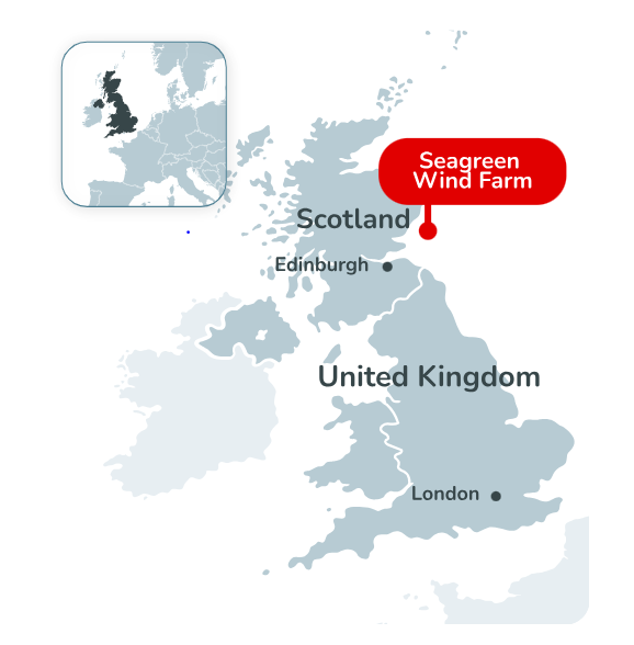 โครงการซีกรีน ออฟชอร์ วินด์ฟาร์ม ตั้งอยู่บริเวณทะเลเหนือ ในพื้นที่ที่มีศักยภาพสูงด้านทรัพยากรลม ห่างจากชายฝั่งประเทศสกอตแลนด์ ประมาณ 27 กิโลเมตร ได้เริ่มดำเนินการผลิตไฟฟ้าเชิงพาณิชย์เมื่อเดือนตุลาคม 2566 ด้วยกำลังการผลิตไฟฟ้ารวมประมาณ 1.1 กิกะวัตต์ โดยมีผู้ดำเนินการคือบริษัท SSE Renewables Services (UK) Ltd (SSE) ซึ่งถือสัดส่วนการลงทุนร้อยละ 49 ทั้งนี้ SSE และกลุ่มบริษัท TotalEnergies SE เป็นผู้พัฒนาและดำเนินงานโครงการพลังงานทดแทนชั้นนำระดับโลก ที่มีความเชี่ยวชาญในการบริหารจัดการและพัฒนาโครงการ ซึ่งถือเป็นผู้ร่วมทุนทางกลยุทธ์ที่สำคัญของ ปตท.สผ. โดยโครงการซีกรีน ออฟชอร์ วินด์ฟาร์ม มีแนวโน้มที่จะสามารถผลิตไฟฟ้าได้อย่างต่อเนื่อง เนื่องจากสหราชอาณาจักรมีความต้องการใช้ไฟฟ้าเพิ่มขึ้นในอนาคต การผลิตไฟฟ้าจากโครงการนี้คาดว่าจะช่วยลดการปล่อยก๊าซเรือนกระจกได้ทั้งหมด 2 ล้านตันต่อปี เมื่อเทียบกับการต้องผลิตไฟฟ้าจากเชื้อเพลิงฟอสซิล