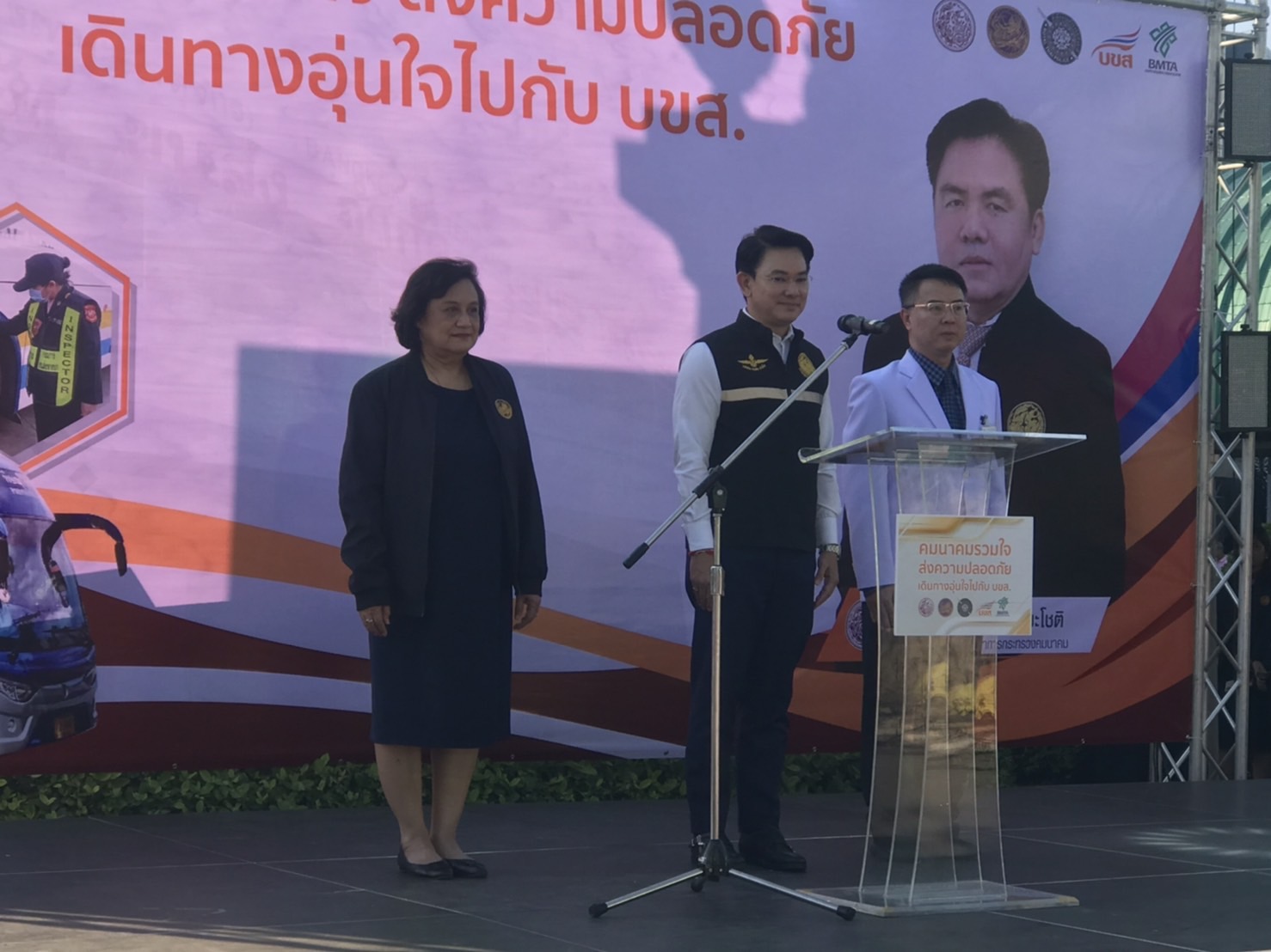 นายสรพงศ์ ไพฑูรย์พงษ์ รองปลัดกระทรวงคมนาคม เป็นประธานในพิธี “คมนาคมรวมใจ ส่งความปลอดภัย เดินทางอุ่นใจไปกับ บขส”โดยมีนางสาวระพิพรรณ วรรณพินทุ รักษาการแทนกรรมการผู้จัดการใหญ่ บริษัท ขนส่ง จำกัด หรือ บขส.ร่วมในพิธีปล่อยแถวขบวนความปลอดภัยเพื่ออำนวยความพร้อมและอำนวยความสะดวกให้พี่น้องประชาชนในการเดินทางกลับภูมิลำเนา