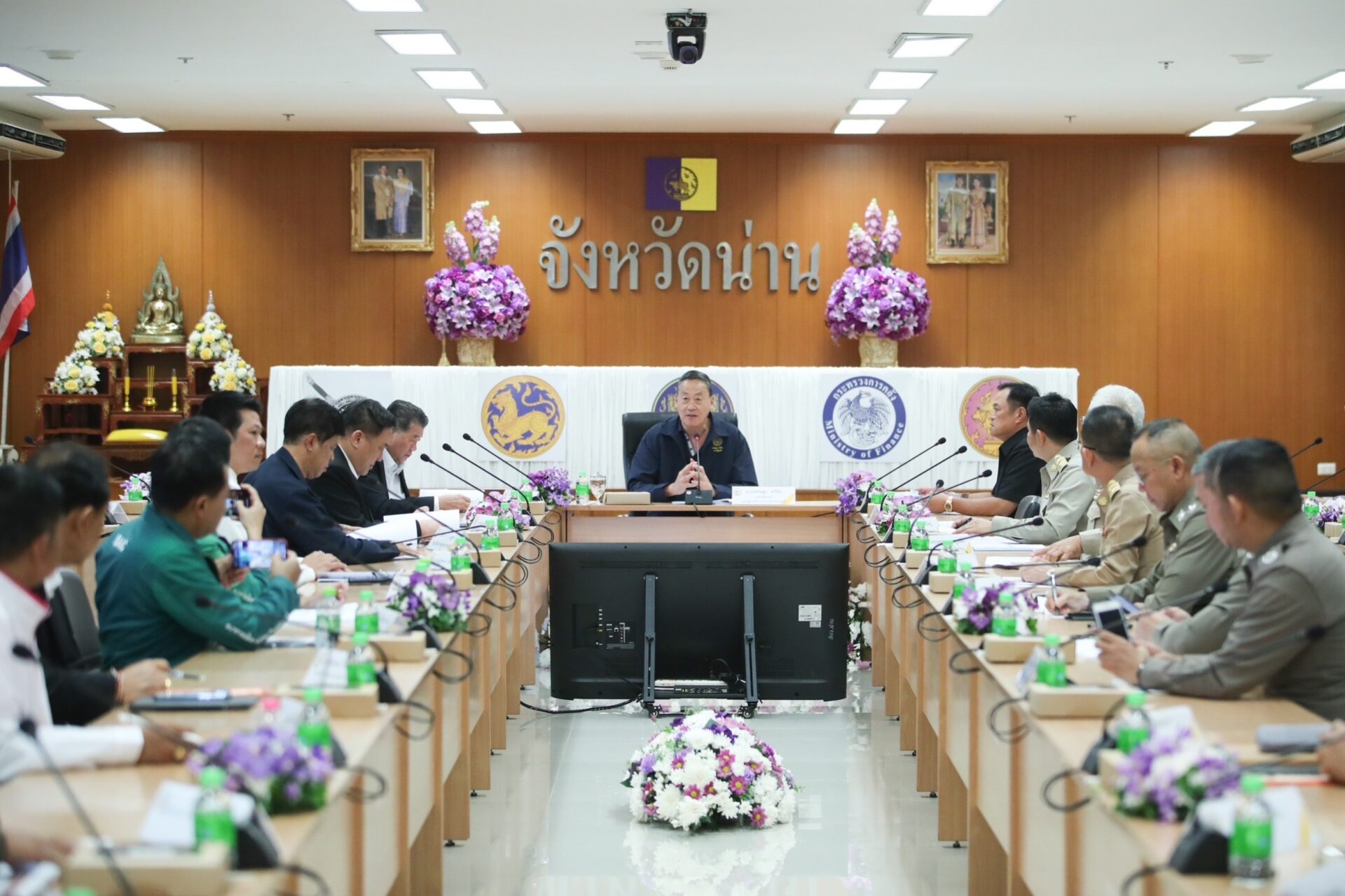 (วันนี้ 23 ธันวาคม 2566) นายเศรษฐา ทวีสิน นายกรัฐมนตรีและรัฐมนตรีว่าการกระทรวงการคลัง ลงพื้นที่ติดตามการดำเนินมาตรการแก้หนี้นอกระบบ โดยเข้าร่วมประชุมและมอบนโยบายในการขับเคลื่อนมาตรการดังกล่าวให้กับหน่วยงานราชการ พร้อมรับฟังการเจรจาไกล่เกลี่ยแก้ไขปัญหาหนี้ระหว่างเจ้าหนี้และลูกหนี้กับหน่วยงานที่เกี่ยวข้อง โดยมีนายภูมิธรรม เวชยชัย รองนายกรัฐมนตรีและรัฐมนตรีว่าการกระทรวงพาณิชย์ นายอนุทิน ชาญวีรกูล รองนายกรัฐมนตรีและรัฐมนตรีว่าการกระทรวงมหาดไทย นายจุลพันธ์ อมรวิวัฒน์ รัฐมนตรีช่วยว่าการกระทรวงการคลัง และนายฉัตรชัย ศิริไล ผู้จัดการธนาคารเพื่อการเกษตรและสหกรณ์การเกษตร (ธ.ก.ส.) พร้อมคณะผู้บริหารและพนักงานในพื้นที่ ให้การต้อนรับ ณ ศาลากลางจังหวัดน่าน ตำบลไชยสถาน อำเภอเมือง จังหวัดน่าน