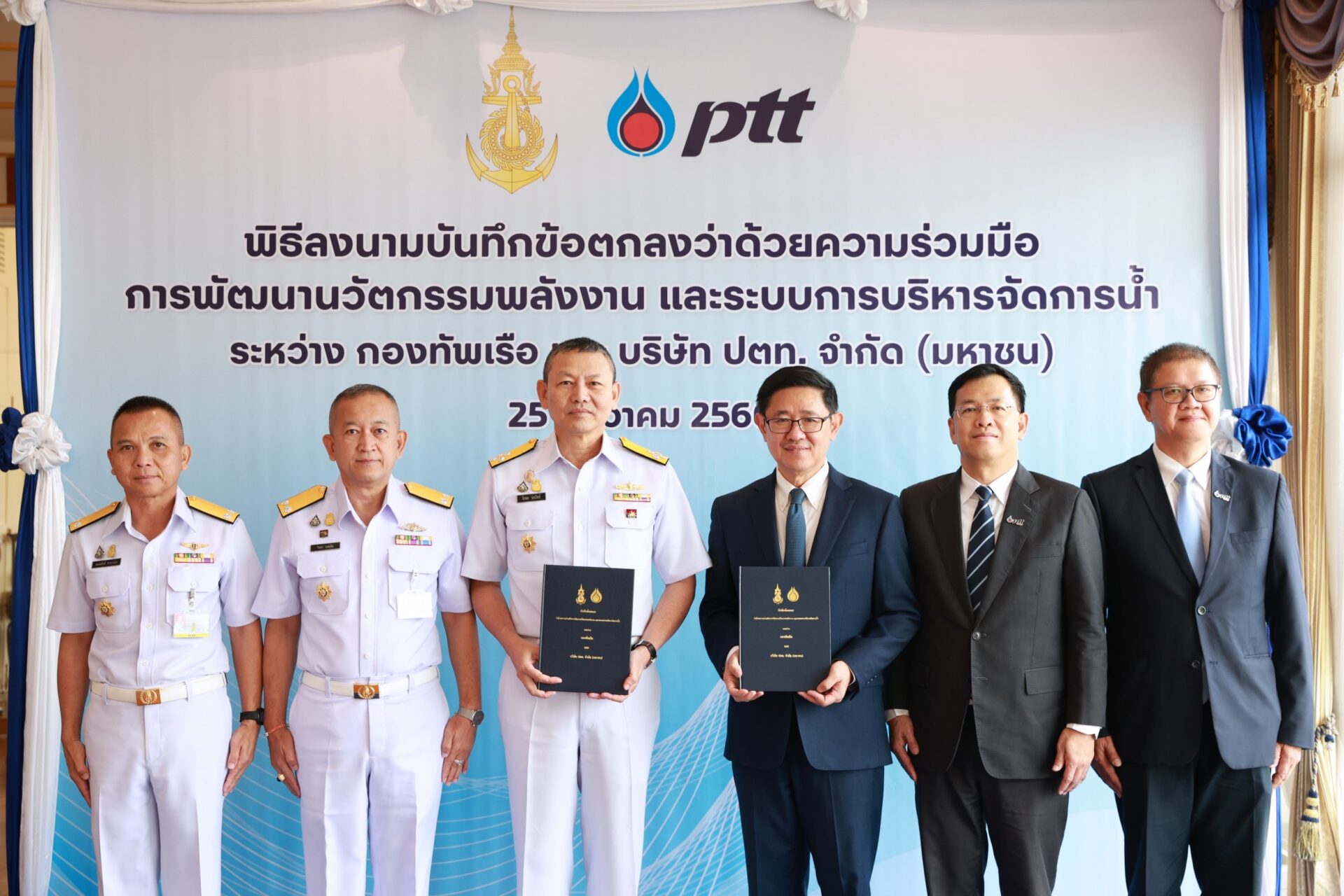 พลเรือเอก จิรพล ว่องวิทย์ ที่ปรึกษาพิเศษกองทัพเรือ และประธานกรรมการบริหารเขตพัฒนาพิเศษภาคตะวันออกของกองทัพเรือ (ซ้าย) และดร.บุรณิน รัตนสมบัติ ประธานเจ้าหน้าที่ปฏิบัติการกลุ่มธุรกิจใหม่และโครงสร้างพื้นฐาน บริษัท ปตท. จำกัด (มหาชน) (ปตท.) (ขวา) เป็นประธานในพิธีลงนามบันทึกข้อตกลงว่าด้วยความร่วมมือการพัฒนานวัตกรรมพลังงาน และระบบการบริหารจัดการน้ำ ระหว่าง กองทัพเรือ และ บริษัท ปตท. จำกัด (มหาชน) เพื่อศึกษาและพัฒนานวัตกรรมพลังงานทดแทน การผลิตพลังงานไฟฟ้าจากแสงอาทิตย์บนทุ่นลอยน้ำ ระบบกักเก็บพลังงาน รวมถึงระบบบริหารจัดการแหล่งน้ำและการใช้น้ำในพื้นที่ภาคตะวันออกของกองทัพเรือ ซึ่งนอกจากจะช่วยลดภาระค่าใช้จ่ายด้านพลังงานไฟฟ้า ยังเป็นการส่งเสริมนวัตกรรมพลังงาน สร้างมูลค่าเพิ่มให้กับทรัพยากร ตลอดจนสนับสนุนภารกิจของกองทัพเรือด้านการสร้างความมั่นคงของประเทศและการช่วยเหลือดูแลประชาชนอีกด้วย.-517-สำนักข่าวไทย