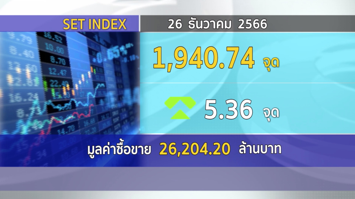 กทม. 26 ธ.ค.- SET ปิดวันนี้ที่ 1,413.45 จุด เพิ่มขึ้น 4.62 จุด (+0.33%) มูลค่าการซื้อขาย 33,948.24 ล้านบาท