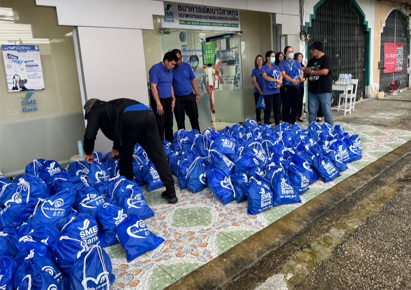 ทั้งนี้ ธนาคารช่วยเหลือต่อเนื่อง เพื่อให้ผู้ประกอบการเอสเอ็มอีในพื้นที่ประสบภัยพิบัติ ตามรายงานของกรมป้องกันและบรรเทาสาธารณภัย กระทรวงมหาดไทย สามารถกลับมาเดินหน้าธุรกิจได้อย่างรวดเร็ว จึงออก “มาตรการช่วยเหลือเอสเอ็มอีไทยได้รับผลกระทบจากอุทกภัย” ได้แก่ 1. มาตรการพักชำระหนี้ เงินกู้ยืมแบบมีระยะเวลา ให้สิทธิ์พักชำระเงินต้น สูงสุด 6 เดือน และ 2. มาตรการเติมทุน ซ่อม สร้าง ฟื้นฟูกิจการ ผ่านผลิตภัณฑ์สินเชื่ออัตราดอกเบี้ยพิเศษ ครอบคลุมทุกกลุ่มธุรกิจ กู้ได้ทั้งบุคคลธรรมดาและนิติบุคคล นำไปใช้ได้ทั้งลงทุน ขยาย ปรับปรุง หมุนเวียน เสริมสภาพคล่อง หรือรีไฟแนนซ์ เป็นต้น เช่น สินเชื่อ “SME D พร้อม” วงเงินกู้สูงสุด 50 ล้านบาท ผ่อนชำระนานสูงสุด 15 ปี ปลอดชำระเงินต้น 18 เดือนแรก และสินเชื่อ “SME Speed Up” วงเงินกู้สูงสุด 5 ล้านบาท ไม่ต้องใช้หลักทรัพย์ค้ำประกัน ผ่อนชำระนานสูงสุด 12 ปี ปลอดชำระคืนเงินต้น 6 เดือนแรก เป็นต้น