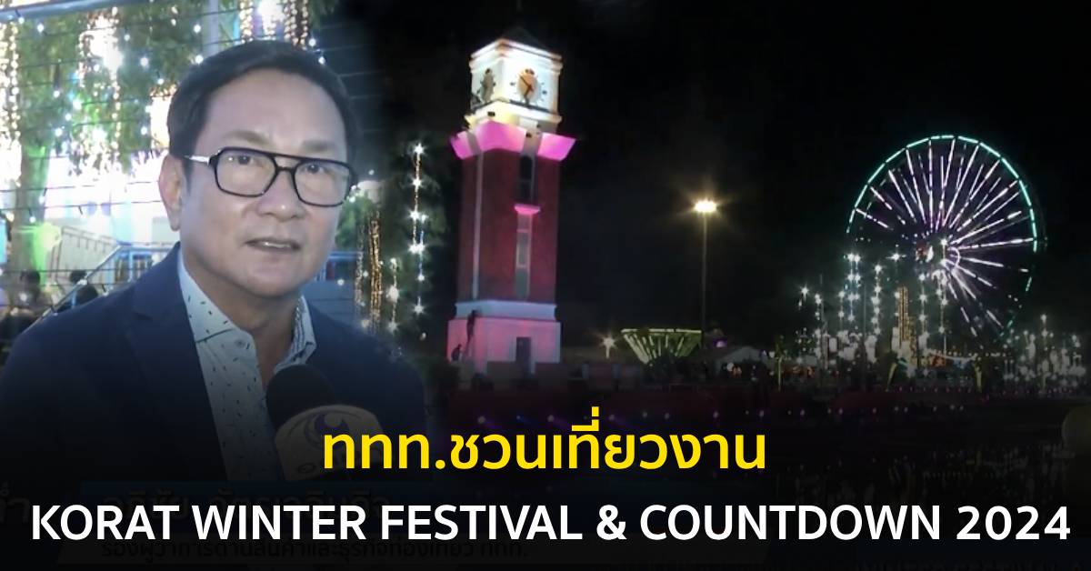นายอภิชัย ฉัตรเฉลิมกิจ รองผู้ว่าการด้านสินค้าและธุรกิจท่องเที่ยวการท่องเที่ยวแห่งประเทศไทย เปิดเผยถึงงาน KORAT WINTER FESTIVAL & COUNTDOWN 2024 เป็นการจัดเทศกาลปีใหม่ ตามนโยบายของรัฐบาลในการกระตุ้นเศรษฐกิจให้นักท่องเที่ยวได้เดินทาง ททท. ได้ร่วมกับ จ.นครราชสีมา จัดงาน KORAT WINTER FESTIVAL & COUNTDOWN 2024 12 วัน 12 คืน โดยภายในงานมีการประดับโคมไฟจำนวนมาก การตกแต่งบริเวณงานด้วยดอกไม้ที่สวยงาม รวมไปถึงมีการแสดงของศิลปินที่มีชื่อเสียงมากมายทุกวัน และในค่ำคืนพรุ่งนี้ 31 ธันวาคม จะมีการจุดพลุเฉลิมฉลองส่งท้ายปีเก่าต้อนรับปีใหม่อีกด้วย