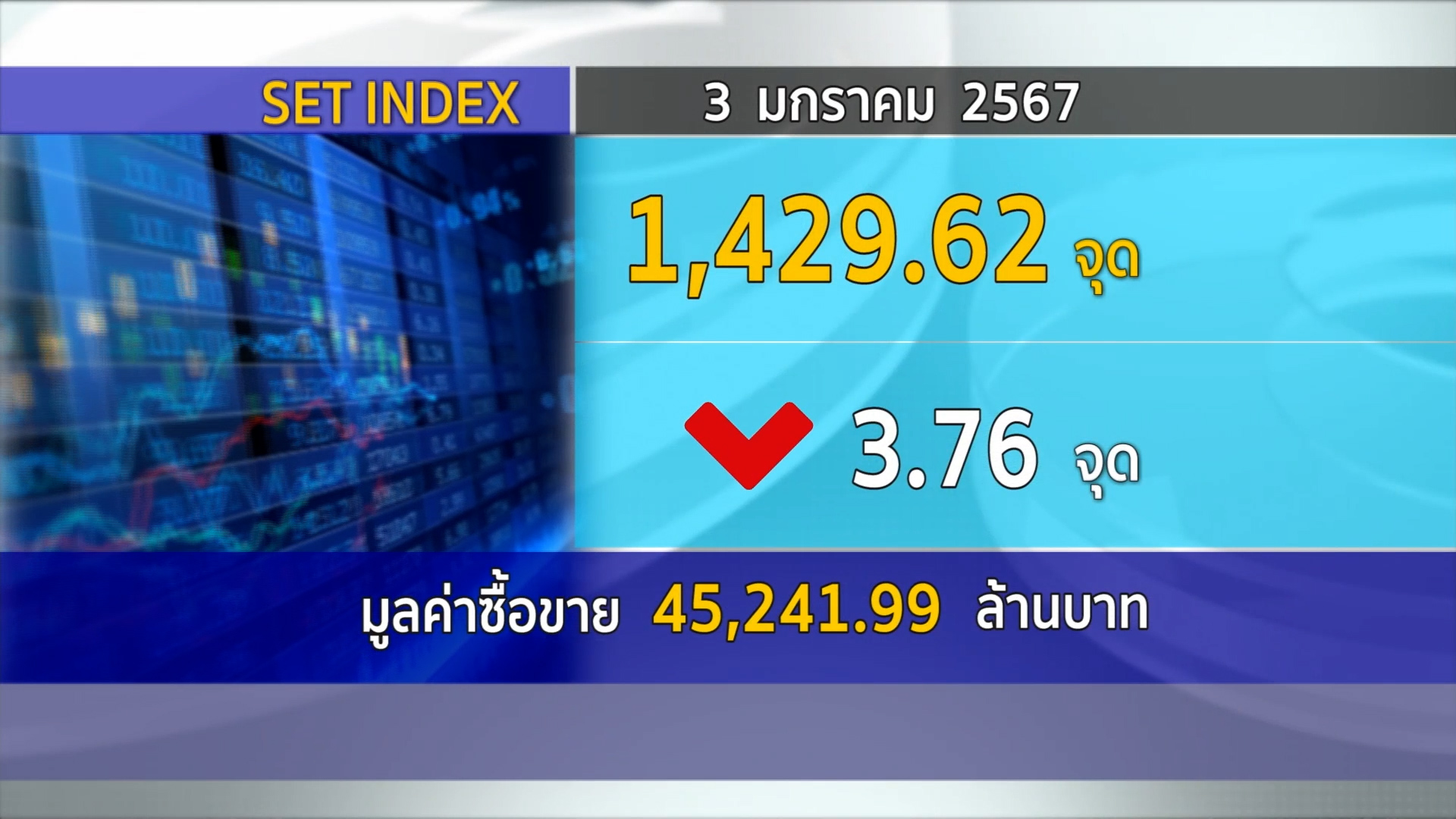 กทม. 3 ม.ค.- SET ปิดวันนี้ที่ 1,429.62 จุด ลดลง 3.76 จุด (-0.26%) มูลค่าซื้อขาย 45,241.99 ล้านบาท