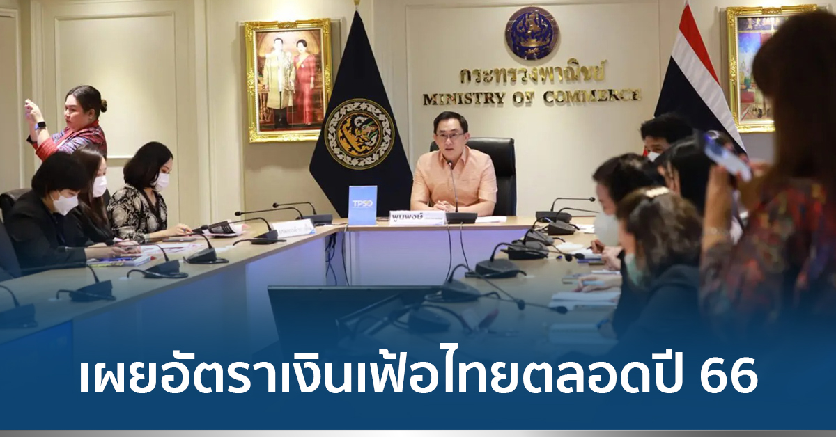 กรุงเทพฯ 5 ม.ค.-สำนักงานนโยบายและยุทธศาสตร์การค้า กระทรวงพาณิชย์เผยอัตราเงินเฟ้อไทยตลอดปี 66 สูงขึ้นเพียงร้อยละ 1.23 ถือว่าสูงขึ้นใกล้เคียงกับที่คาดการณ์ไว้ ชี้มาจากมาตรการภาครัฐดูแลค่าครองชีพลดค่าน้ำมันและไฟฟ้ารวมถึงราคาน้ำมันตลาดโลกลดลง คาดอัตราเงินเฟ้อในปี 67 จะสูงเฉลี่ยอยู่ที่รัอยละ 0.3-1-7 ยังอยู่ในกรอบไม่สูงมาก