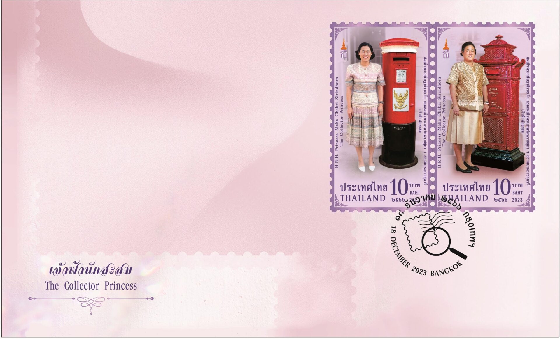 นายดนันท์ สุภัทรพันธุ์ กรรมการผู้จัดการใหญ่ บริษัท ไปรษณีย์ไทย จำกัด กล่าว ว่า แสตมป์ชุดเจ้าฟ้านักสะสมเพื่อเฉลิมพระเกียรติสมเด็จพระกนิษฐาธิราชเจ้า กรมสมเด็จพระเทพรัตนราชสุดา ฯ สยามบรมราชกุมารี ในฐานะที่ทรงเป็น “เจ้าฟ้านักสะสม” ที่ทรงมีพระมหากรุณาธิคุณต่อกิจการไปรษณีย์ไทยและตราไปรษณียากรไทย ภาพแสตมป์เป็นพระฉายาลักษณ์ที่ทรงฉายกับตู้ไปรษณีย์ ใน 2 ช่วงเวลา ได้แก่ พระฉายาลักษณ์ เมื่อปี พ.ศ. 2534 ที่ทรงฉายพระรูปคู่กับตู้ไปรษณีย์รุ่นที่ 2 ของไทย ณ ที่ทำการไปรษณีย์โทรเลขจิตรลดา และพระฉายาลักษณ์เมื่อปี พ.ศ. 2551 ที่ทรงฉายกับตู้ไปรษณีย์รุ่นแรกของไทย ณ งานสยามสมัย 125 ปี ไปรษณีย์ไทย